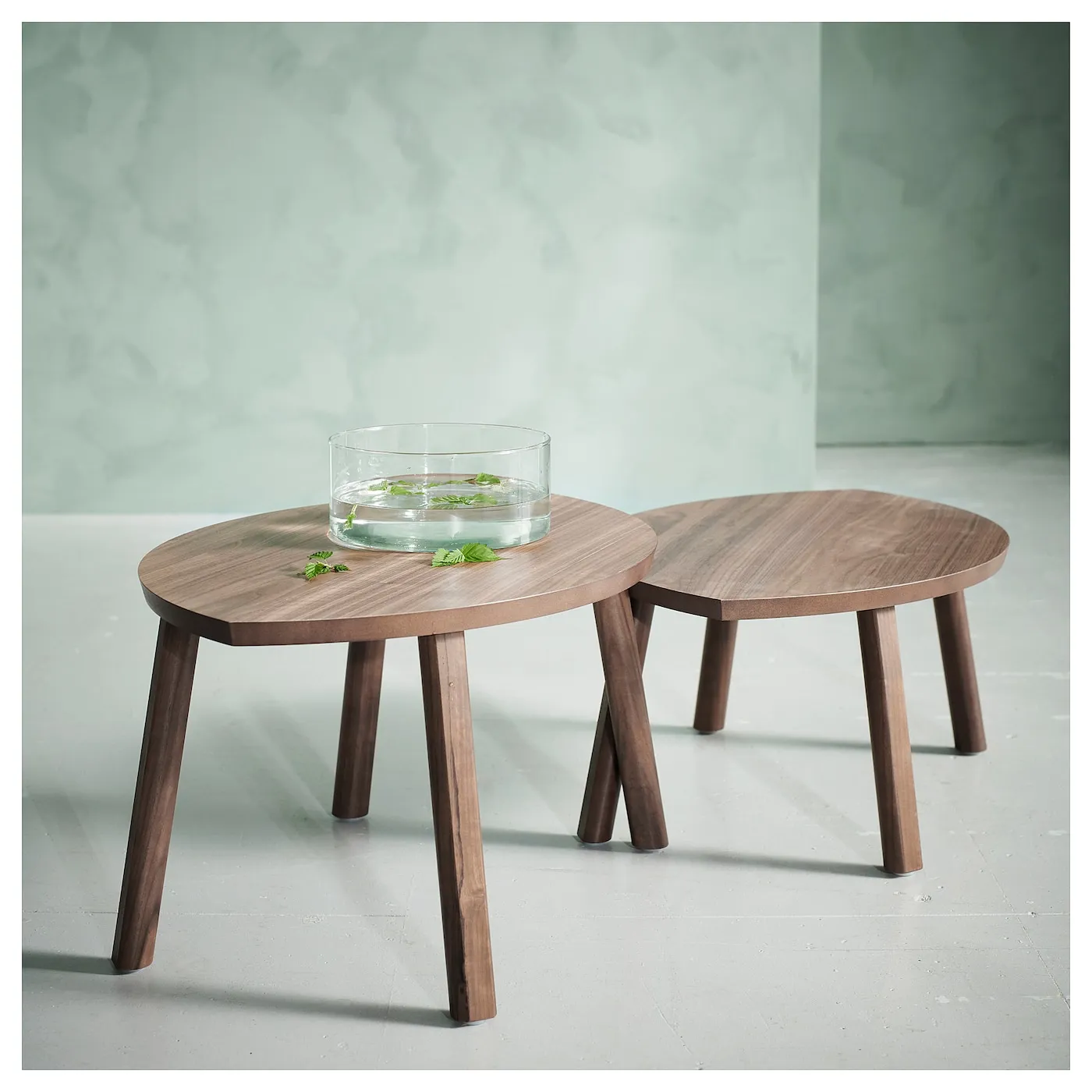 Дань современному скандинавскому дизайну. Эти стильные столики с поверхностями из шпона грецкого ореха имеют элегантный и теплый вид. Используйте их как по отдельности, так и вместе.