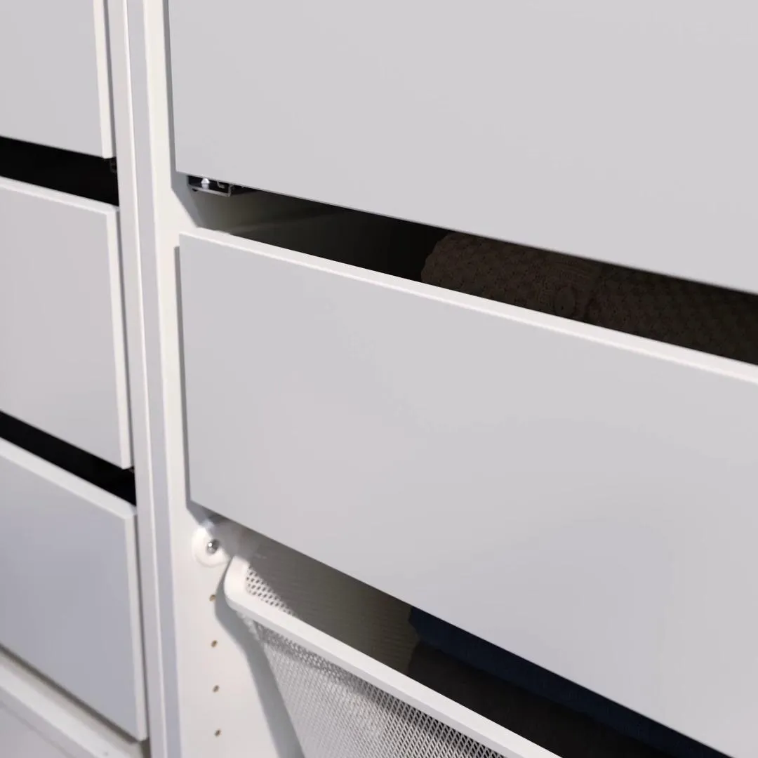 Идеально подходит для сложенной одежды или аксессуаров, придавая вашему гардеробу PAX аккуратный и минималистичный вид. Дополните ящиками KOMPLEMENT — и потратьте меньше времени на поиск парных носков.