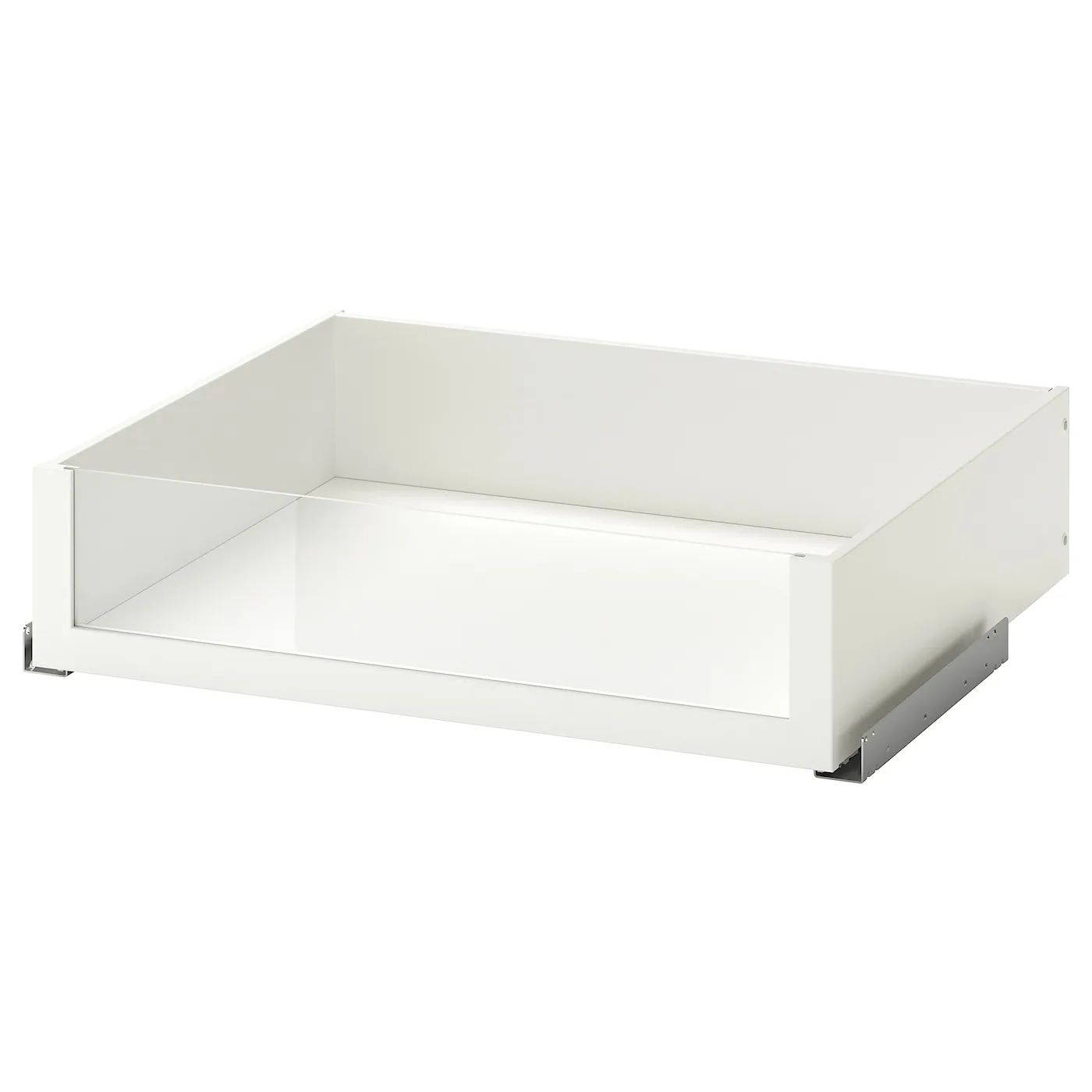 Можно дополнить стеклянной полкой KOMPLEMENT, чтобы содержимое верхнего ящика было видно сверху.