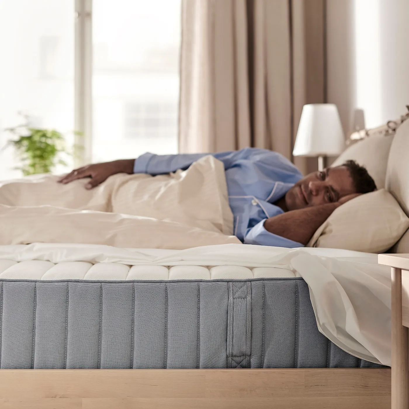 Плотный матрас высотой 24 см с независимыми пружинами. Равномерное распределение веса тела с учётом комфортных зон обеспечивает более мягкую поддержку для бёдер и плеч. Толстый слой пены добавляет комфорта.