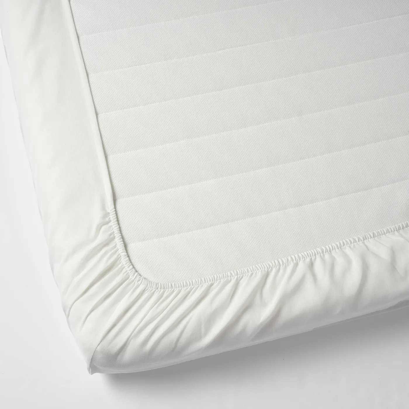 Подходит для матрасов толщиной до 16 см, поскольку простыня имеет эластичную окантовку по всему периметру.
