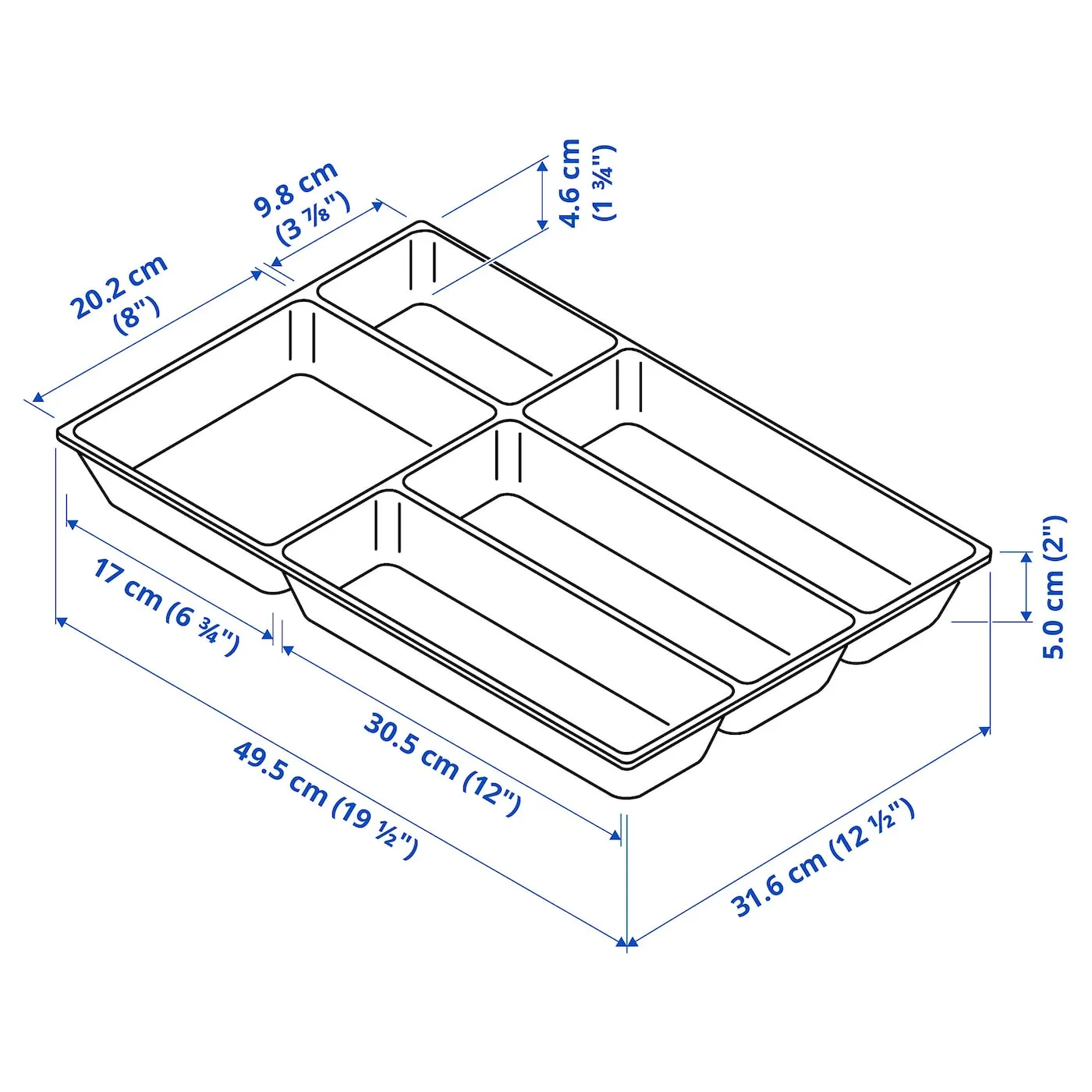 Может комбинироваться с другими органайзерами UPPDATERA для оптимального использования пространства в кухонных ящиках.