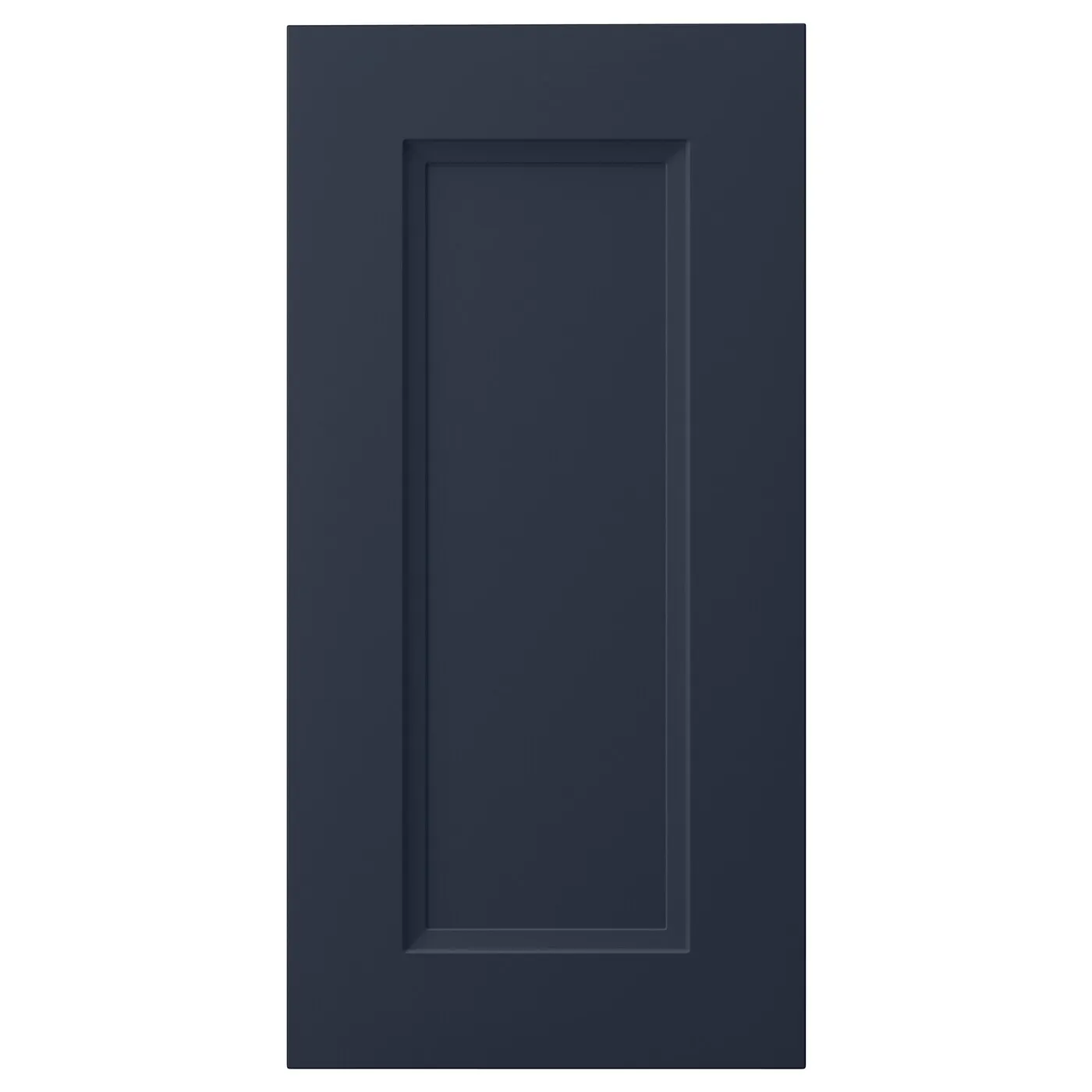 Кухонная дверь AXSTAD имеет матовую синюю поверхность с мягкими линиями и вставной панелью. Этот дизайн позволяет создать как современную, так и традиционную кухню.