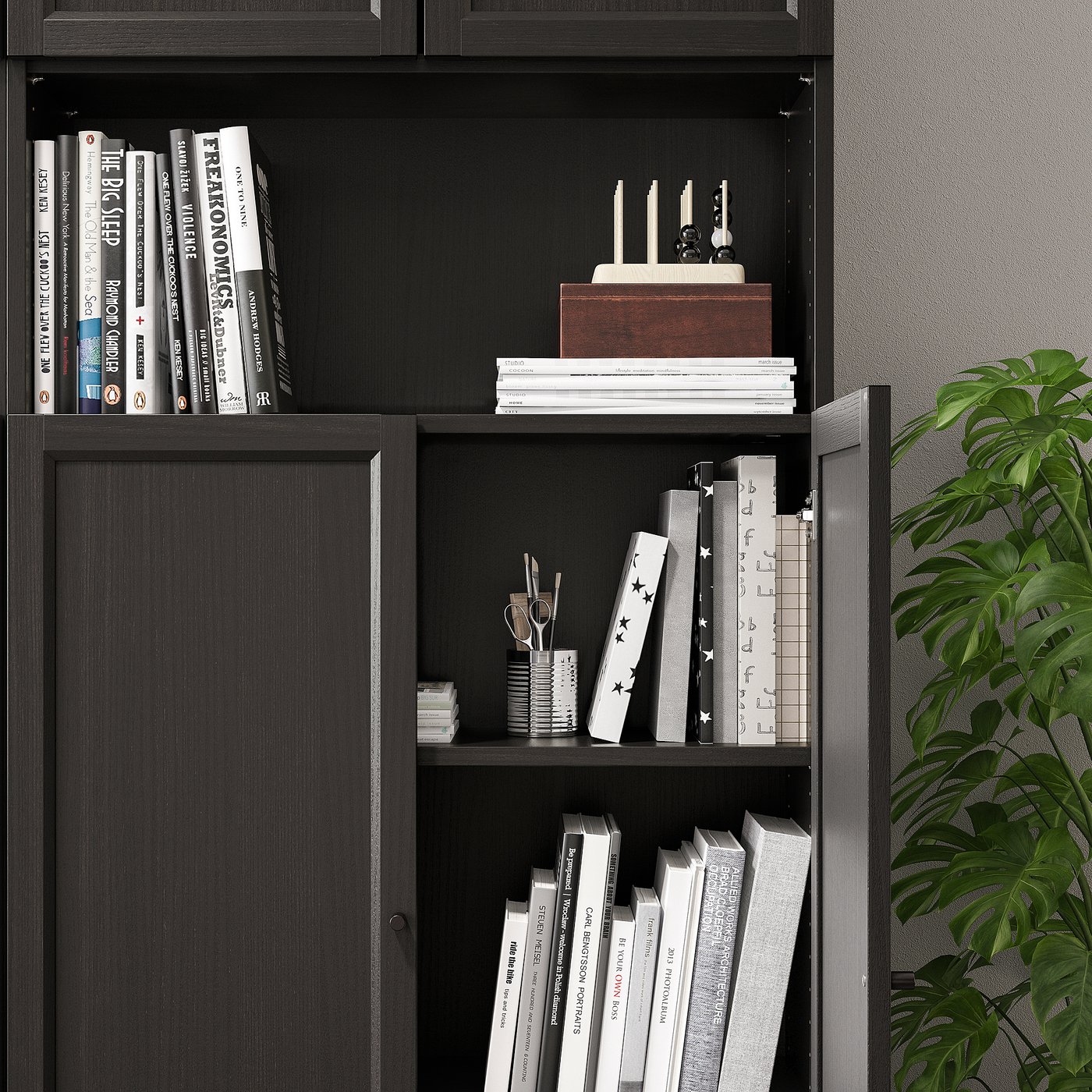Добавление двери к книжному шкафу BILLY придаст ему новый вид и новые функции, такие как скрытие и защита того, что вы храните.