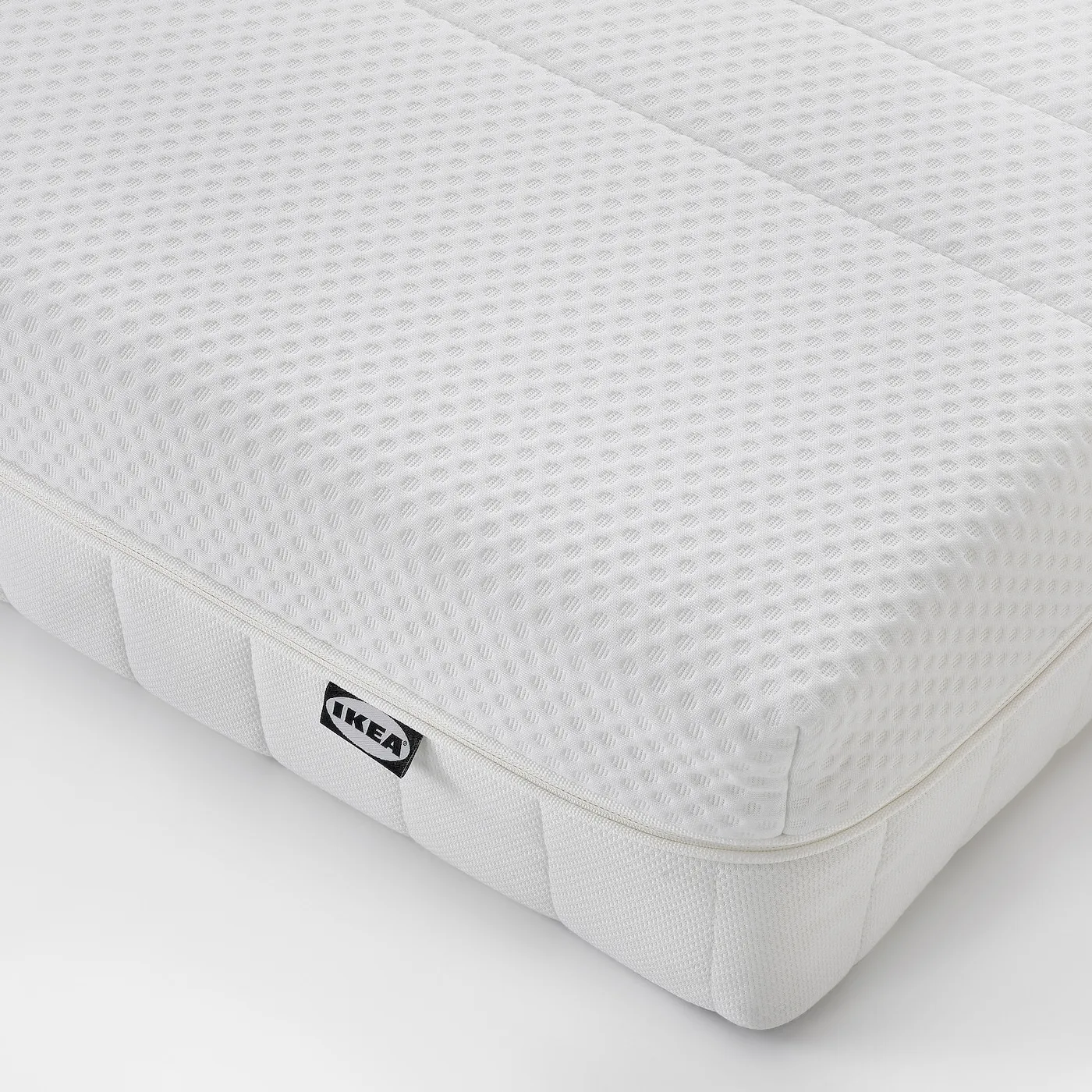 Жесткий 20-сантиметровый поролоновый матрас с тремя уровнями комфорта и поддержки. Съемный чехол и верхний слой из высокоэластичного поролона, дополненные пеной с эффектом памяти и зонами комфорта для равномерного распределения веса тела.