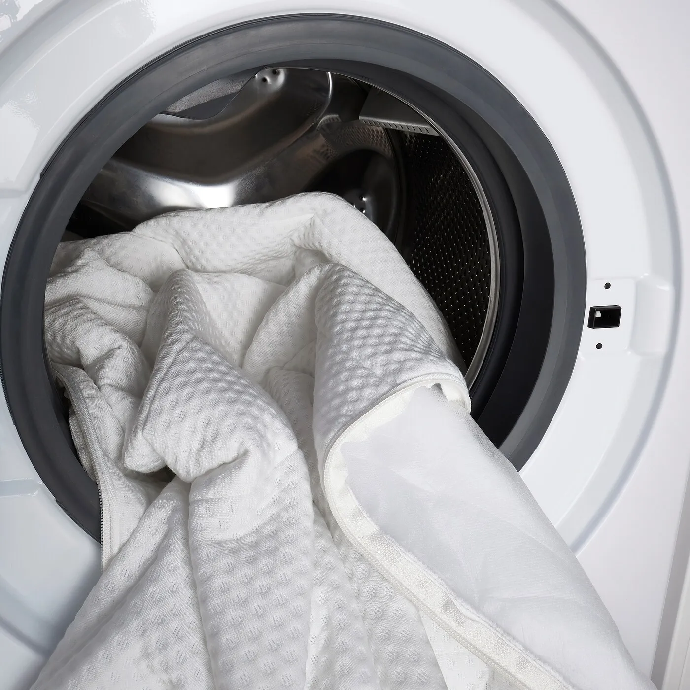 Чехол съемный и может быть выстиран в машине. Разделите чехол, чтобы его было легче поместить в стиральную машину.