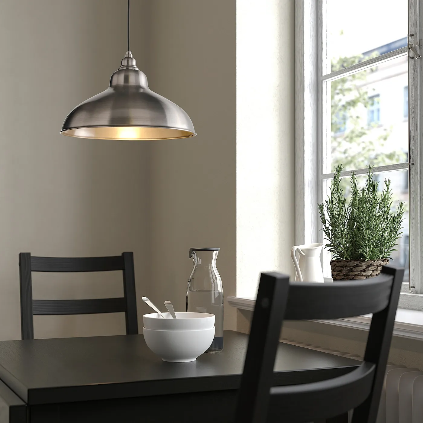Этот светильник обеспечивает приятное освещение для обеденного стола и эффективно освещает поверхность стола или барной стойки.
