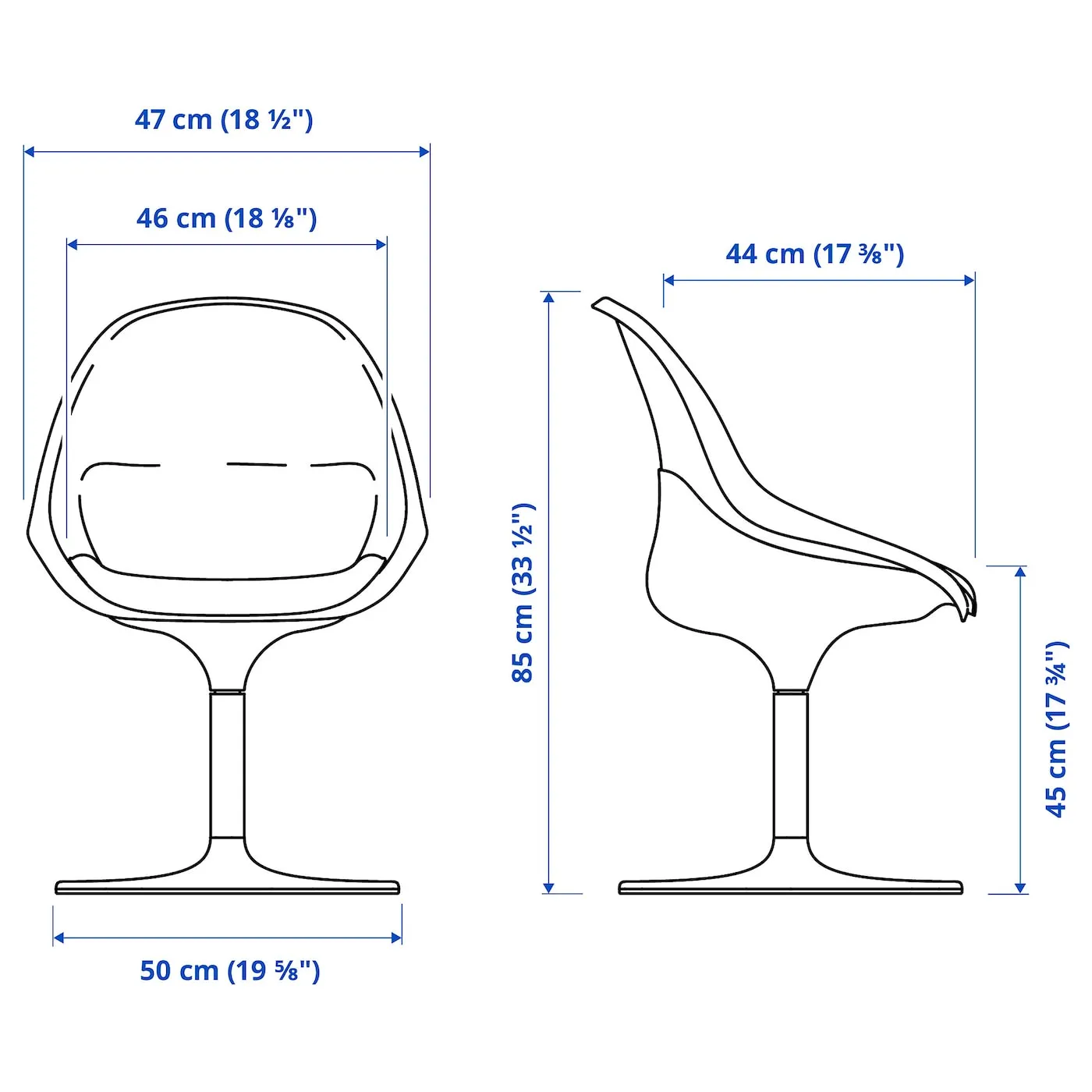 Удобно сидеть благодаря форме сиденья в виде чаши и закругленной спинке.
