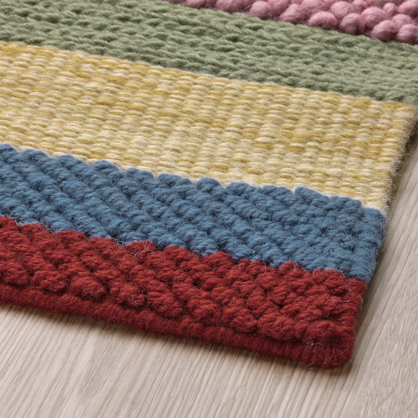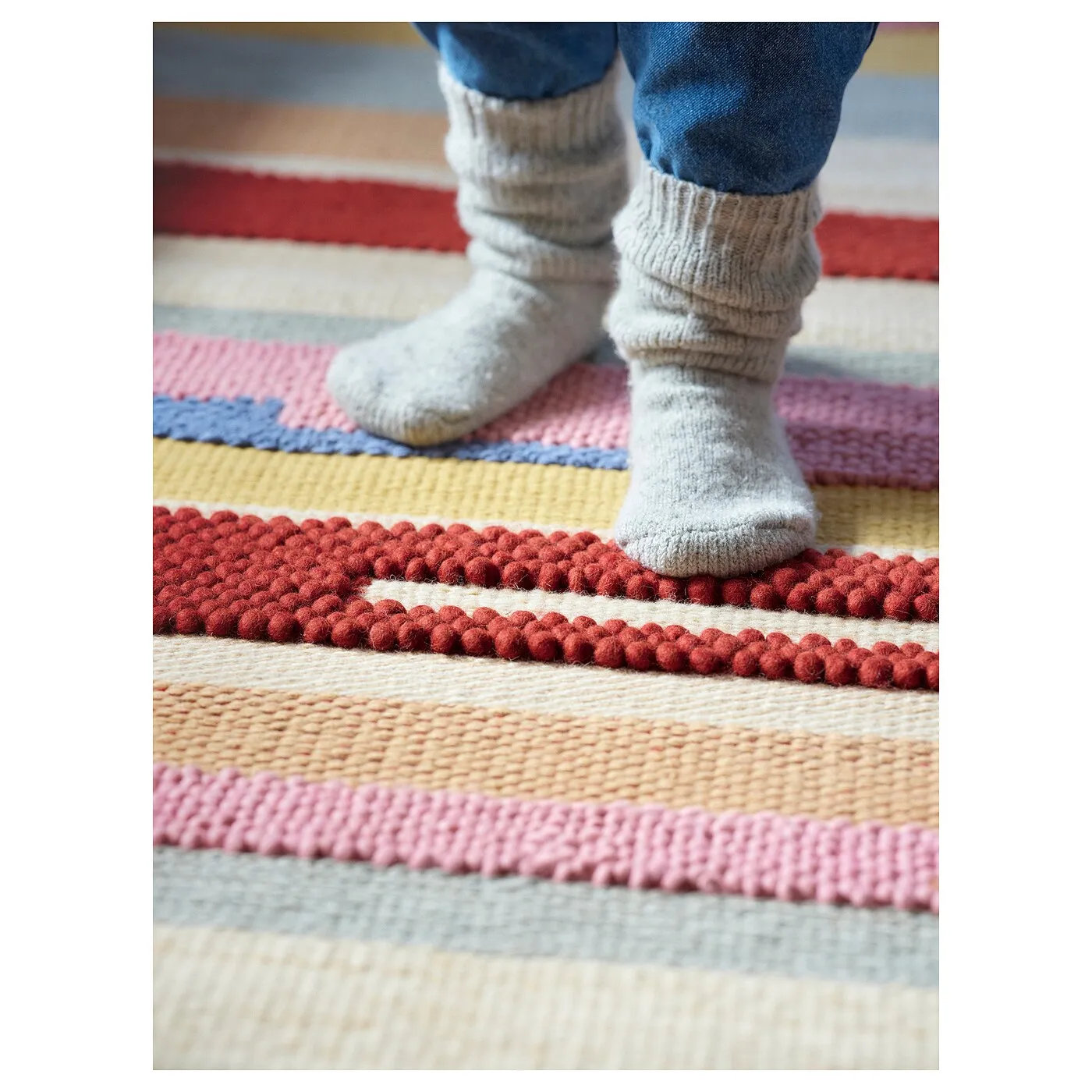 Сочетание различных техник плетения создает яркий узор с богатой фактурой и характером. Каждый ковер соткан вручную опытными мастерами и поэтому является настоящим произведением искусства из чистой шерсти.