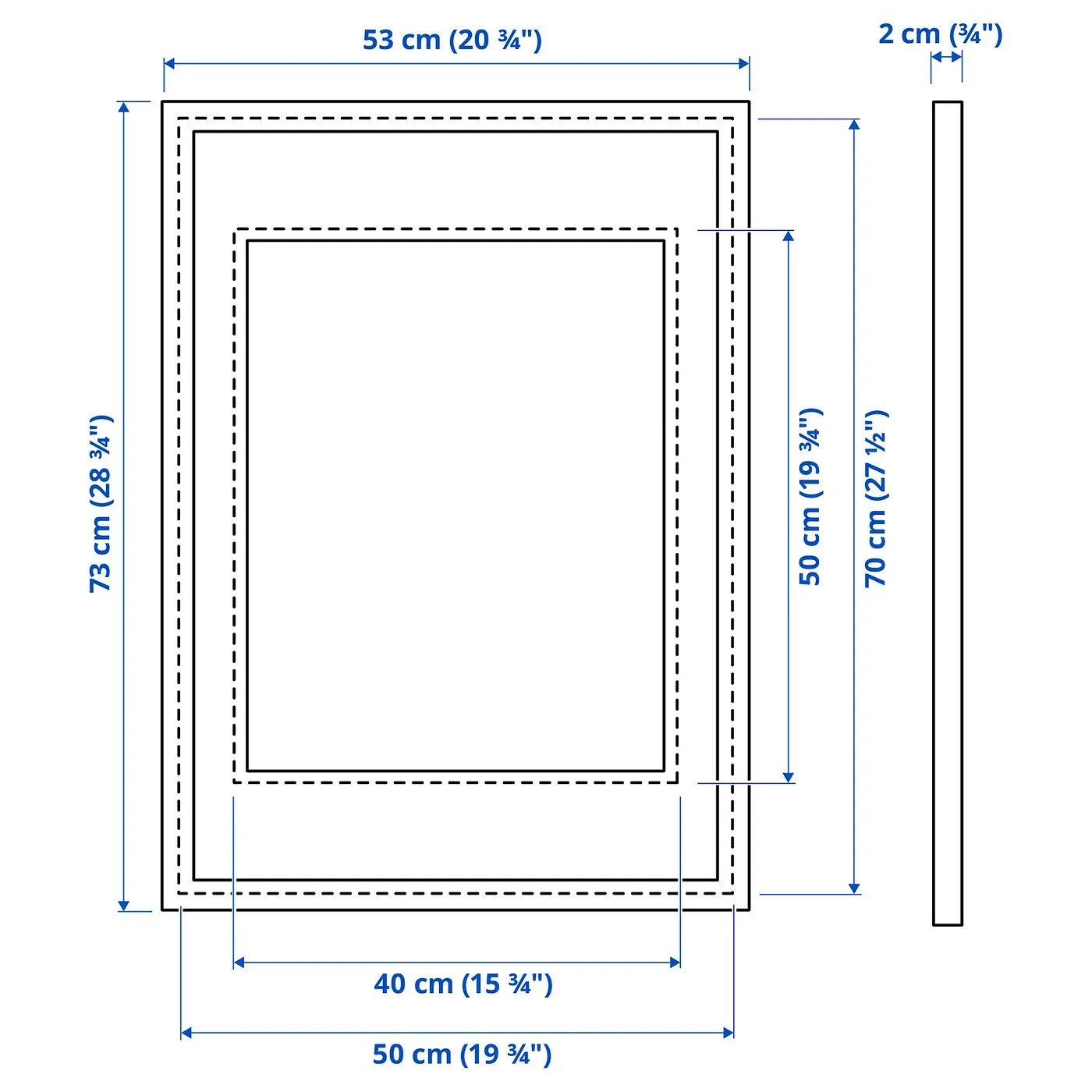 Эта рамка подходит для картины размером 40x50 см при использовании с подрамником, и для картины размером 50x70 см без подрамника.