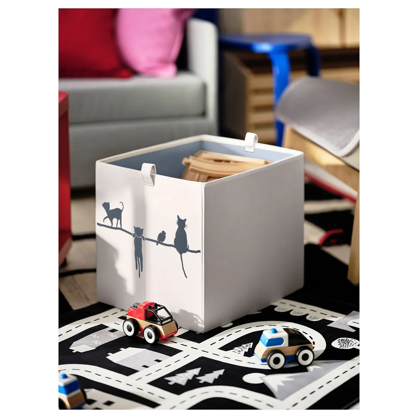 Пусть котики присмотрят за одеждой и игрушками вашего ребёнка. Эта большая коробка из 100% переработанного полиэстера украшена весёлым принтом с двух сторон. Идеально сочетается с тремя меньшими коробками BARNDRÖM.