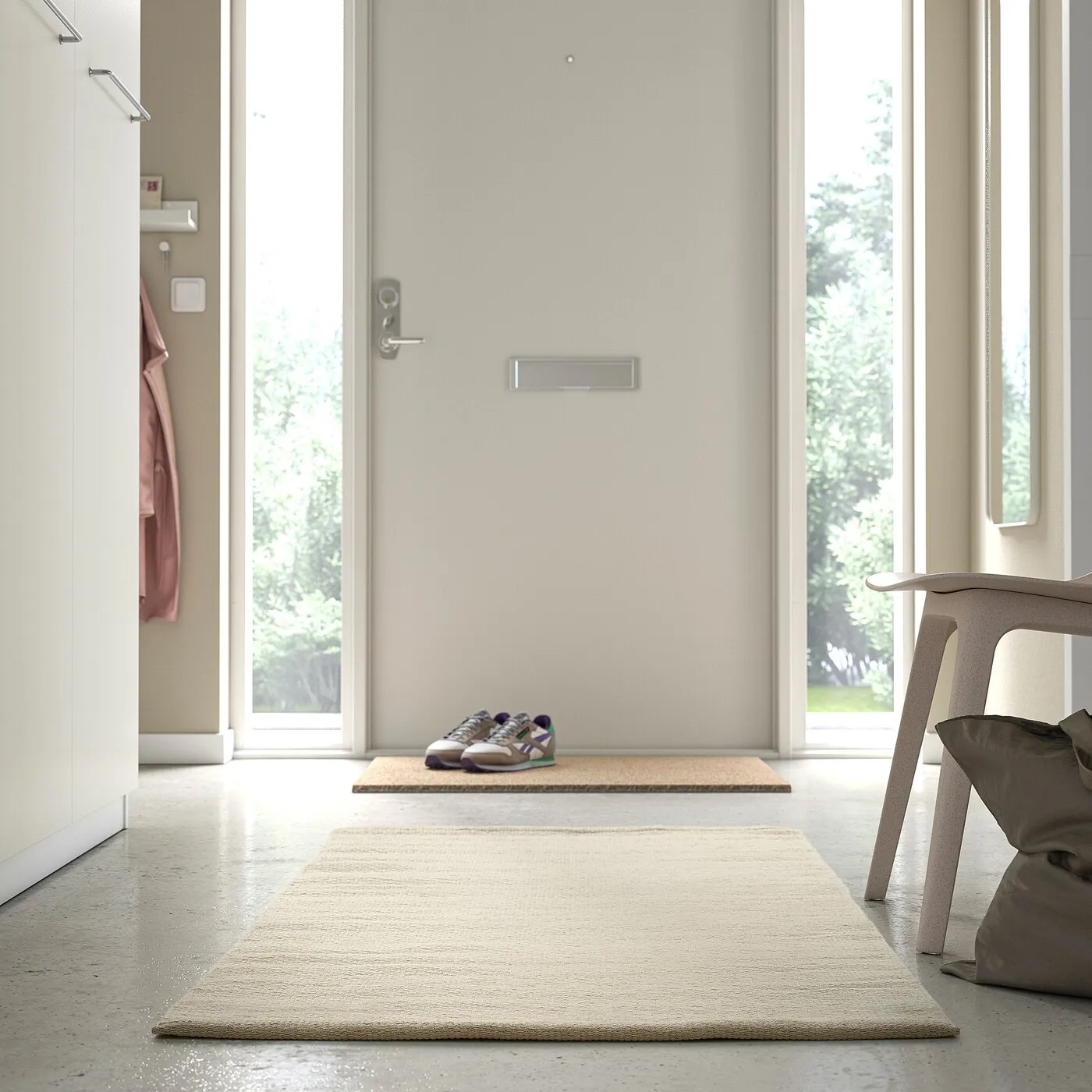 Этот плетеный ковер в нежных бежевых тонах добавит уюта вашему пространству и приятно согреет ноги. Классическая привлекательность, создаваемая шерстью.
