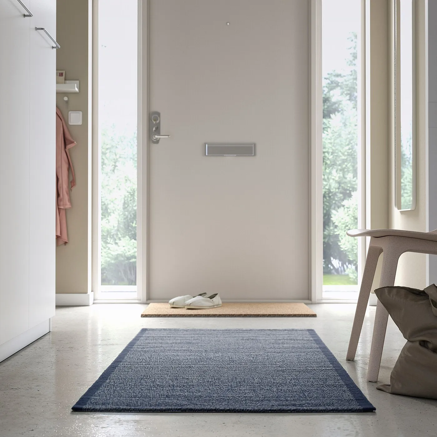 Добавьте свежести и уюта вашему дому. Этот хлопковый ковер имеет спокойный темно-синий оттенок с проблесками белого. Сочетайте его с придверным ковриком IDROTTSPLATS для гармоничного дизайна в прихожей.