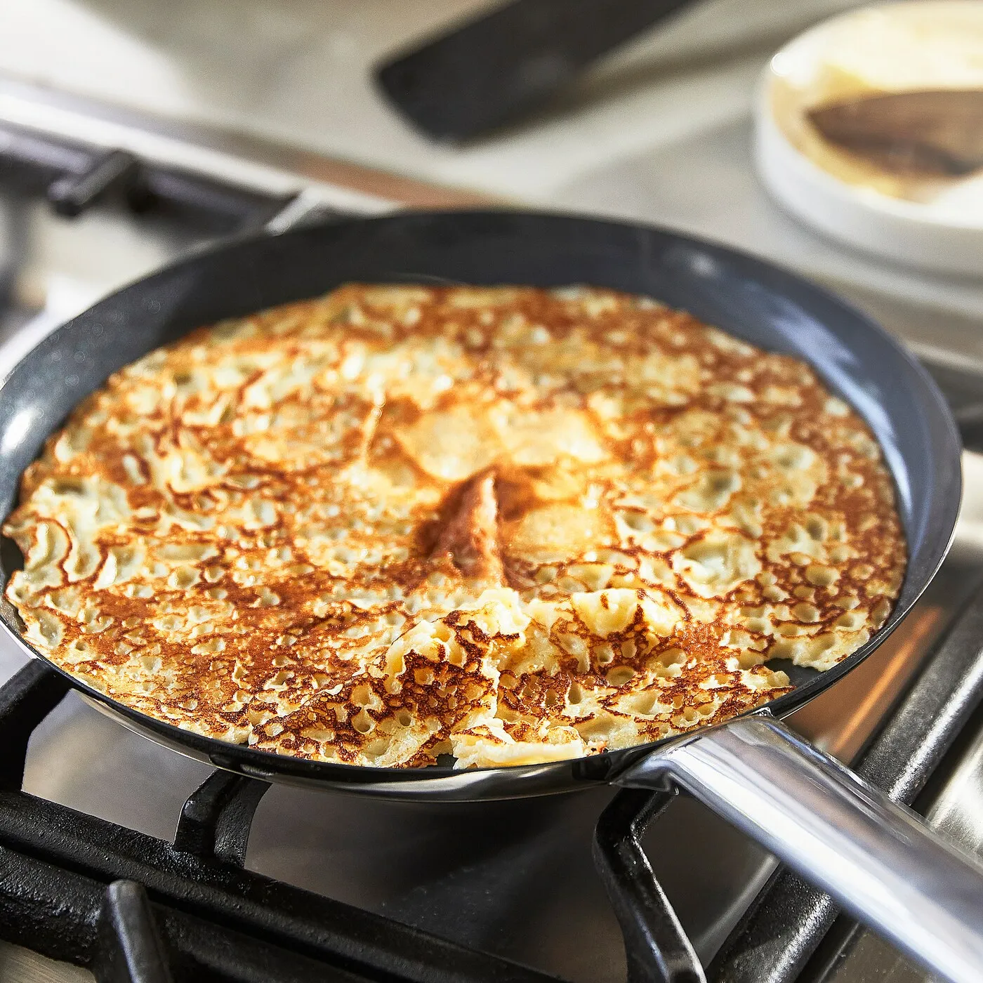 Низкий бортик и наклонные края делают сковороду удобной для переворачивания блинов и крепов.