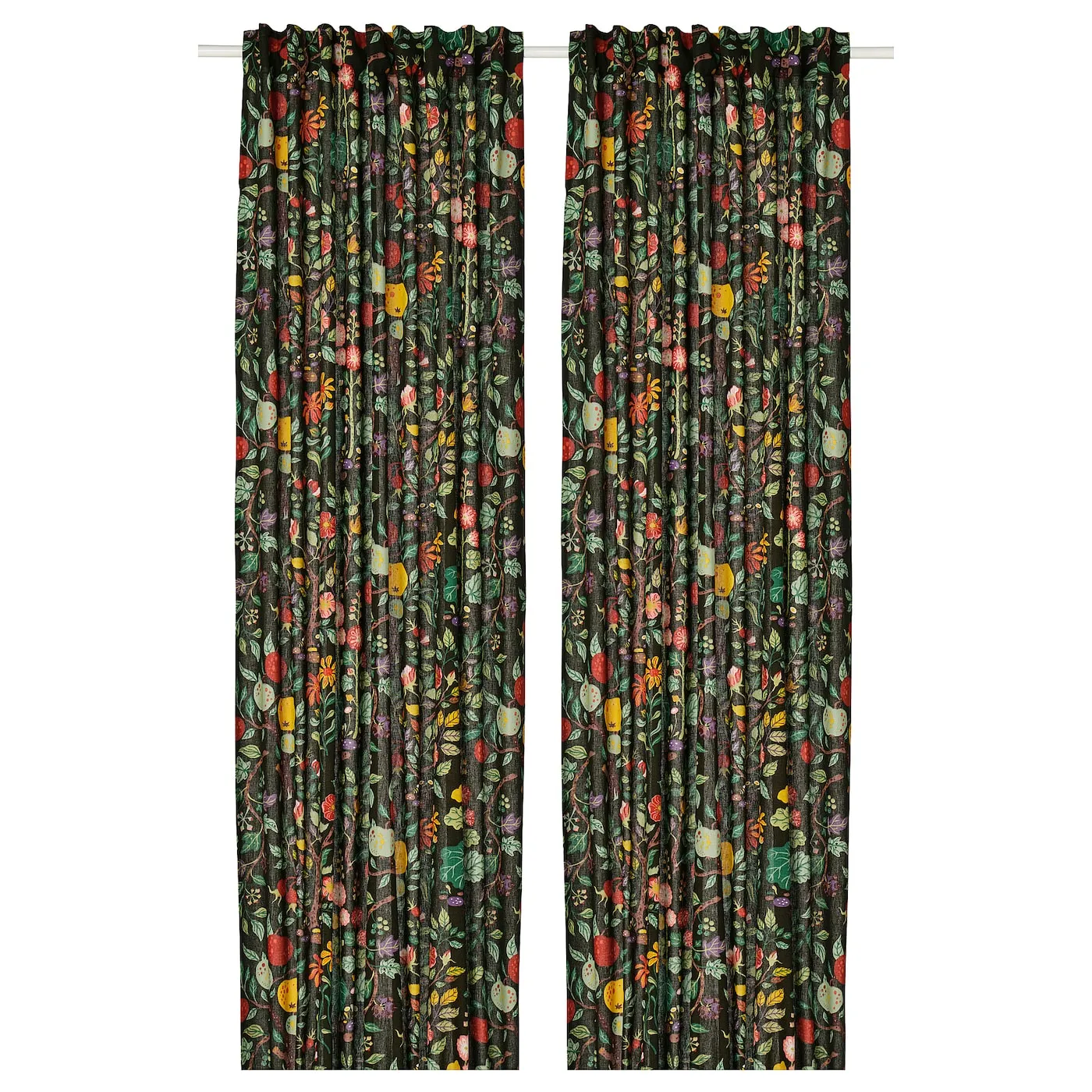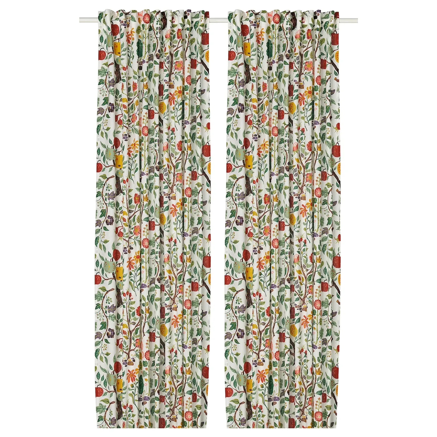 На белом фоне этих штор VILDPERSILJA вас всегда ждёт новый сюрприз в виде ярких цветочных узоров. Смесь хлопка и рами сохраняет светотеневую игру. Длина в 250 см идеально подходит для крепления над окном.