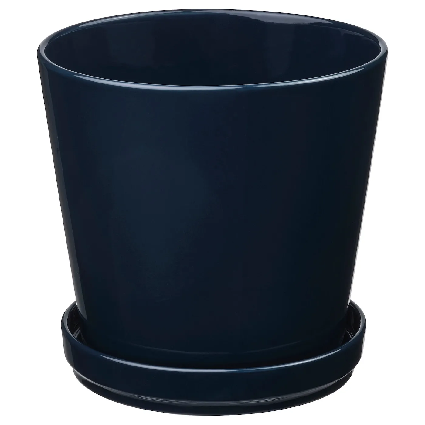 KLOTLÖNN, Кашпо с поддоном, для дома и улицы, черно-синее, 19 см