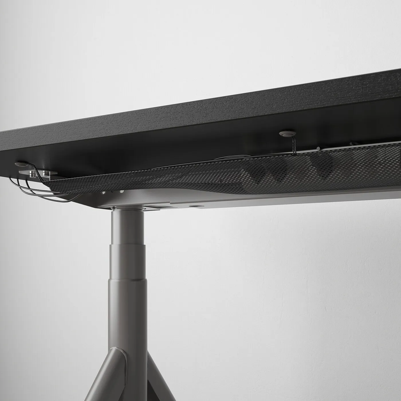 Удобно держать стол в порядке благодаря сетке для кабелей под столешницей.