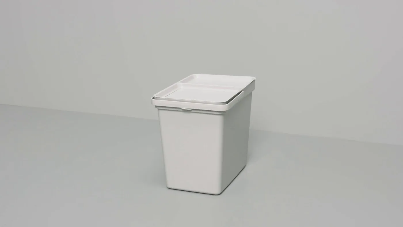 Кольцо на верхнем крае контейнера скрывает мусорный пакет и удерживает его на месте. Оно легко снимается для упрощенной чистки или если не используется.