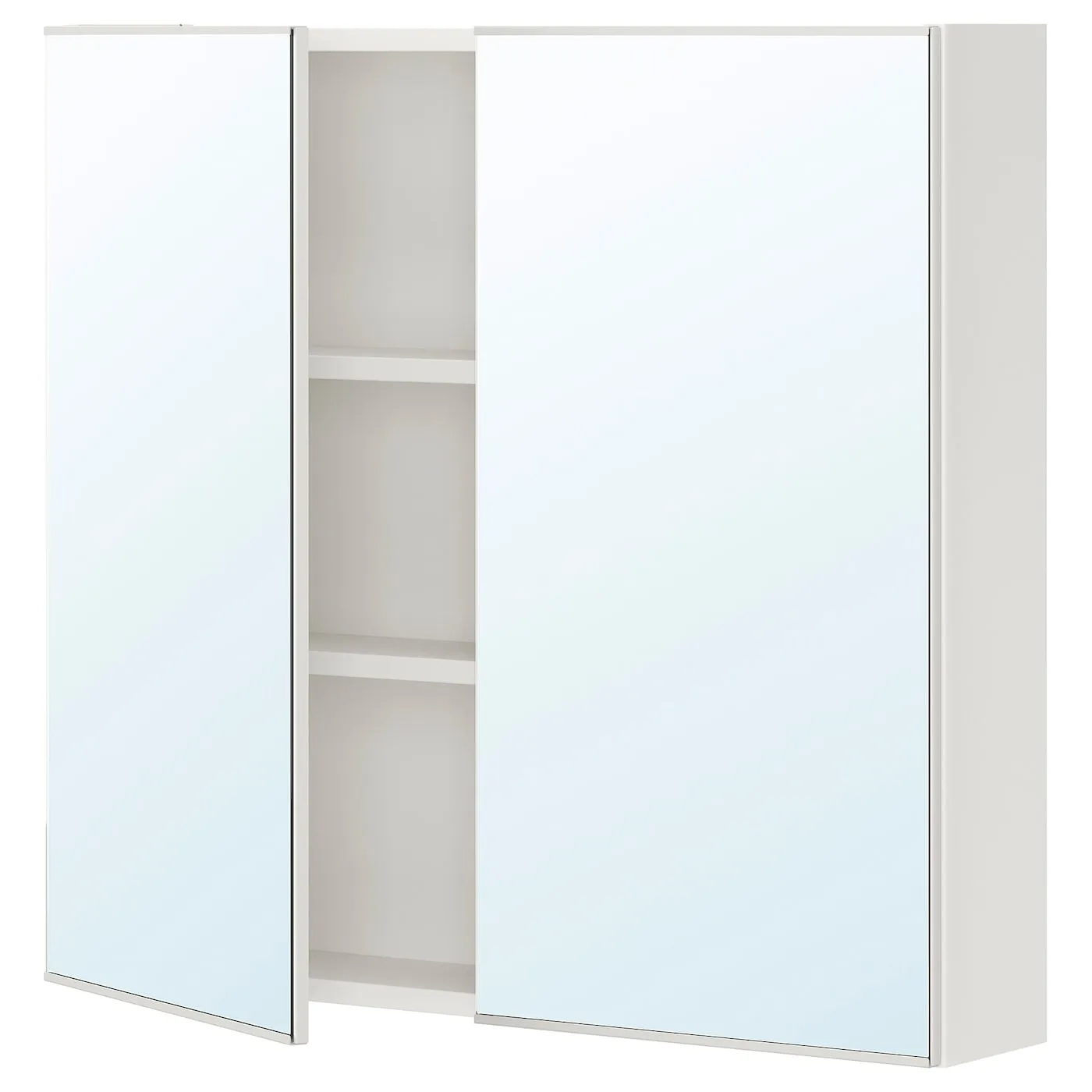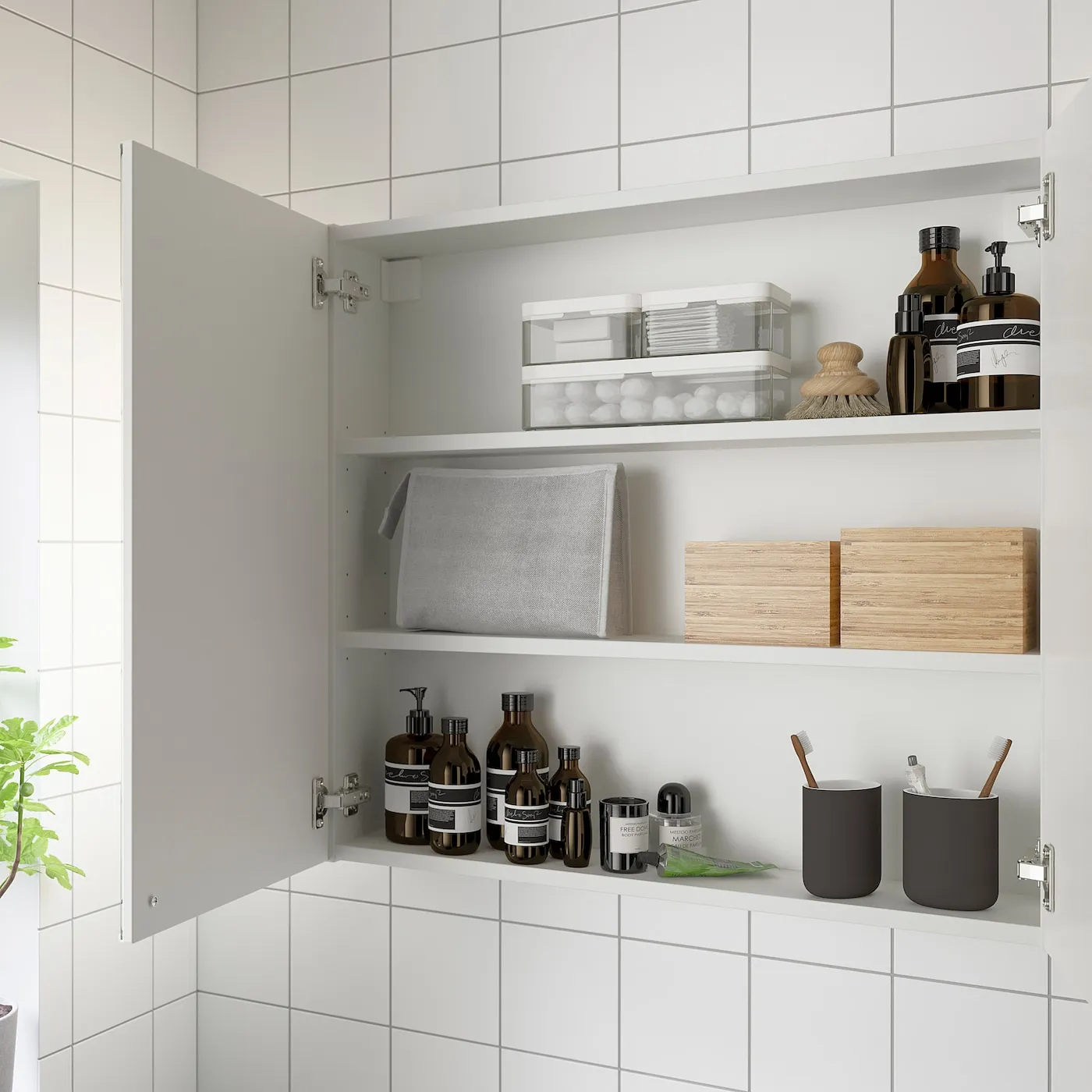 Зеркальные дверцы над умывальником облегчают утренние процедуры и делают помещение более просторным и светлым. Легко комбинируется с дверцами и фасадами ENHET и другой мебелью, которая уже есть у вас дома.