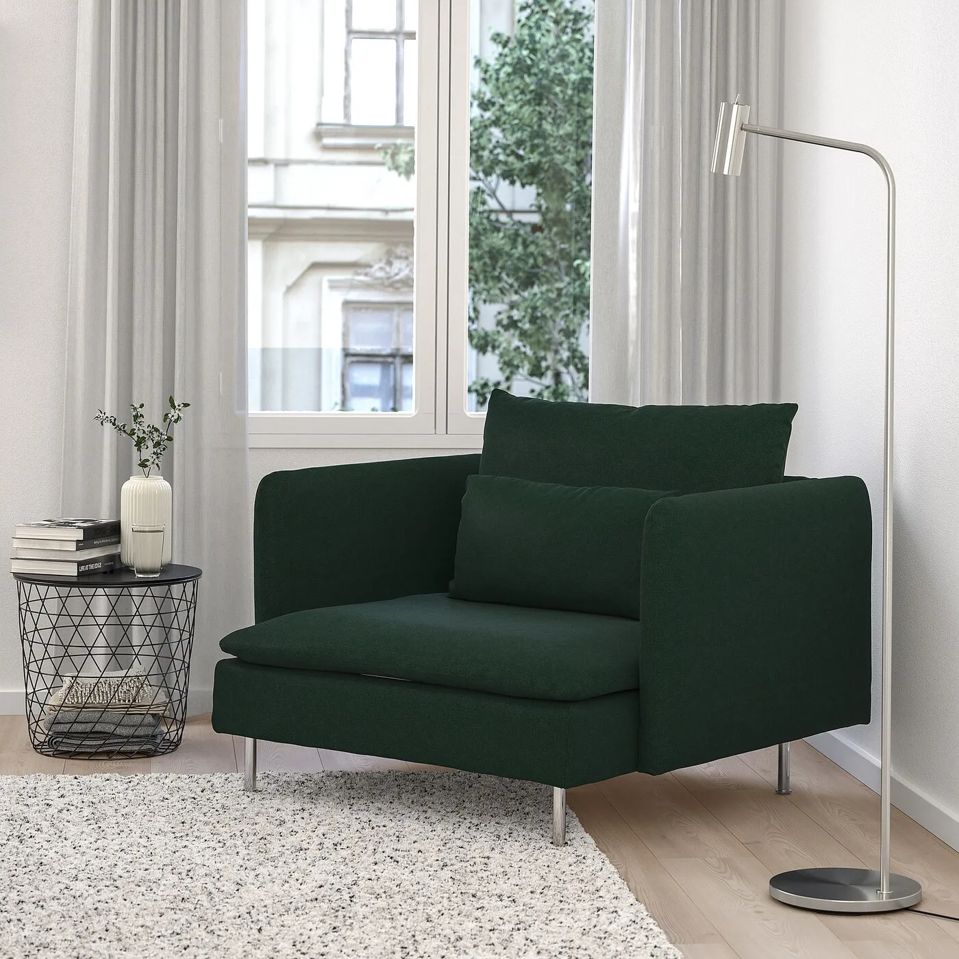 Серия сидений SÖDERHAMN позволяет сидеть глубоко, низко и мягко с поддержкой благодаря съёмным подушкам.
