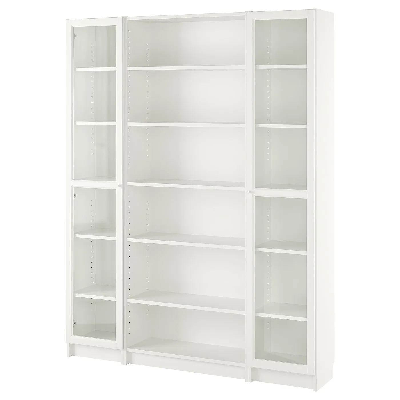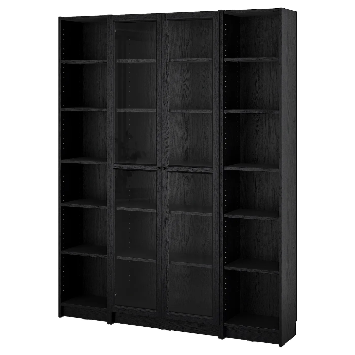 Книжный шкаф BILLY давно стал любимым символом благодаря своей универсальности и многогранному применению. Эта модель с дверцами из стекла OXBERG предлагает обширное хранение как на открытых, так и на закрытых полках.