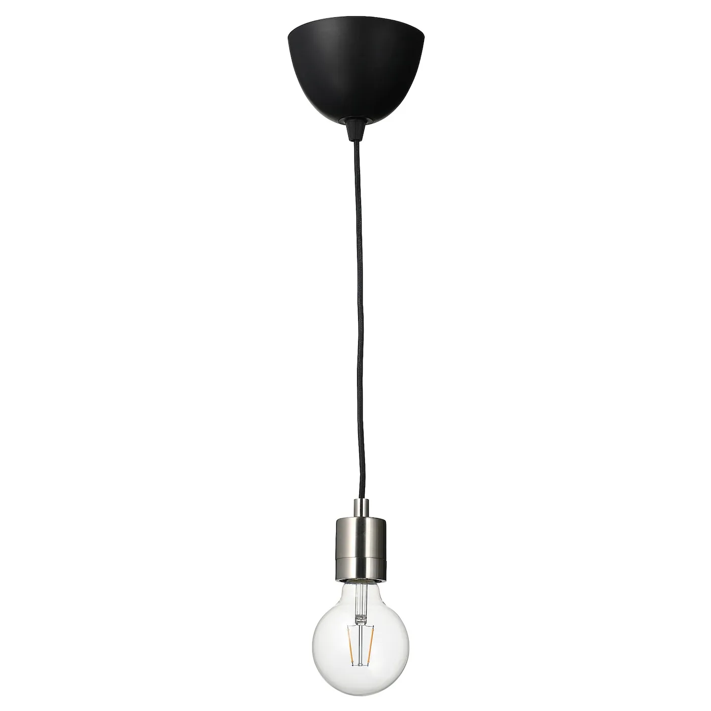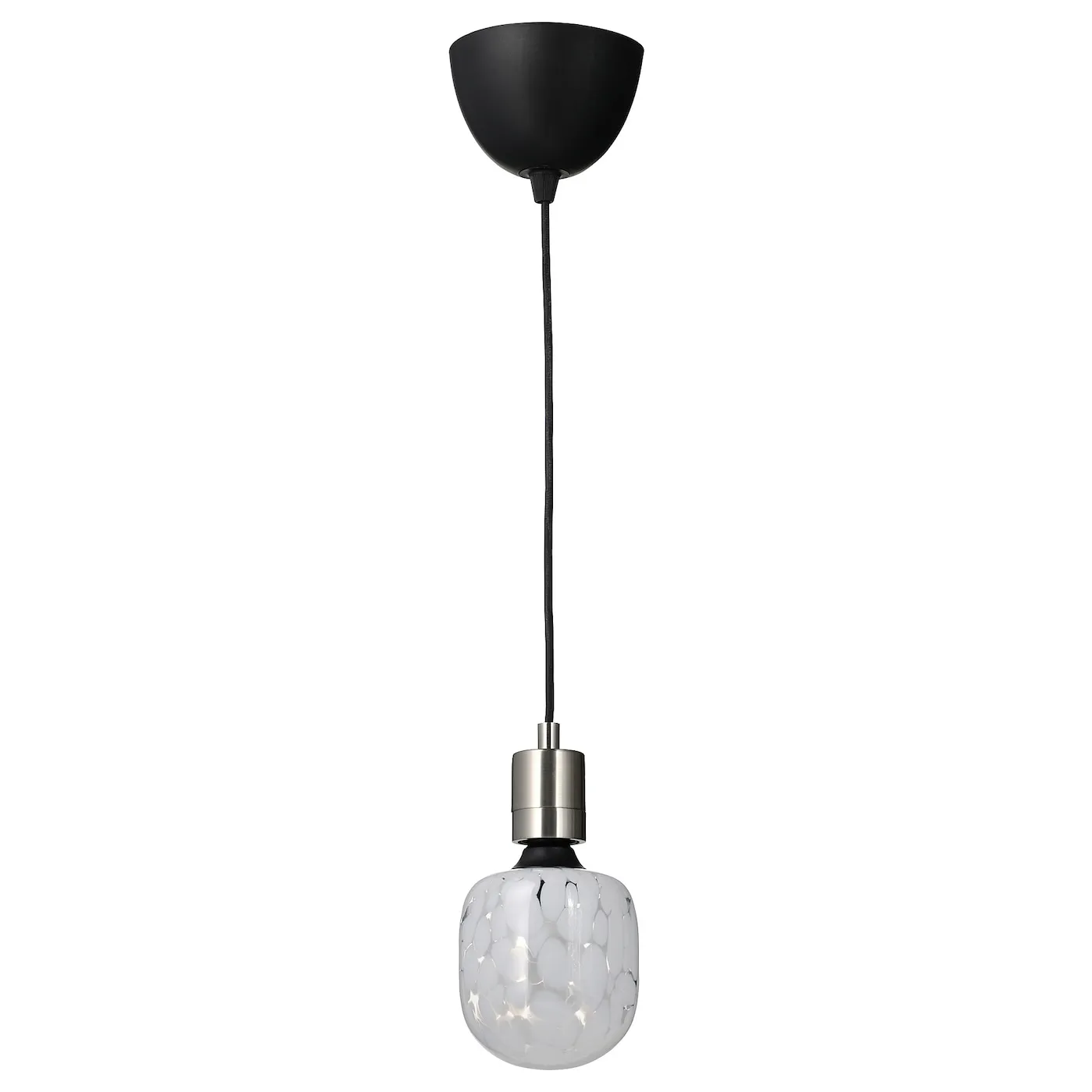 Ищете подвесной светильник с лаконичным дизайном и оригинальной изюминкой? Этот светильник оснащен никелированной основой, черным текстильным шнуром и трубчатой светодиодной лампой с неравномерными точками, создающими рассеянное теплое свечение.
