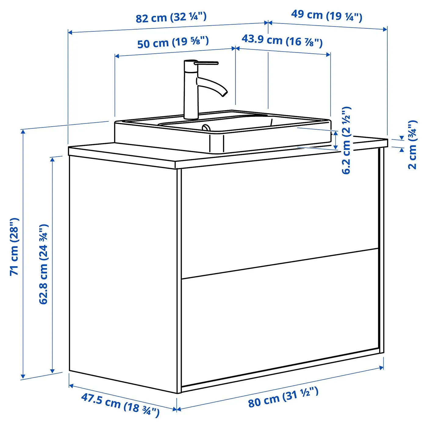 Мебель для ванной HAVBÄCK отличается чистым и лаконичным дизайном. Эта тумба с полувстраиваемым умывальником и столешницей станет вашим персональным акцентом при выборе ручек или ручек-пуговиц.