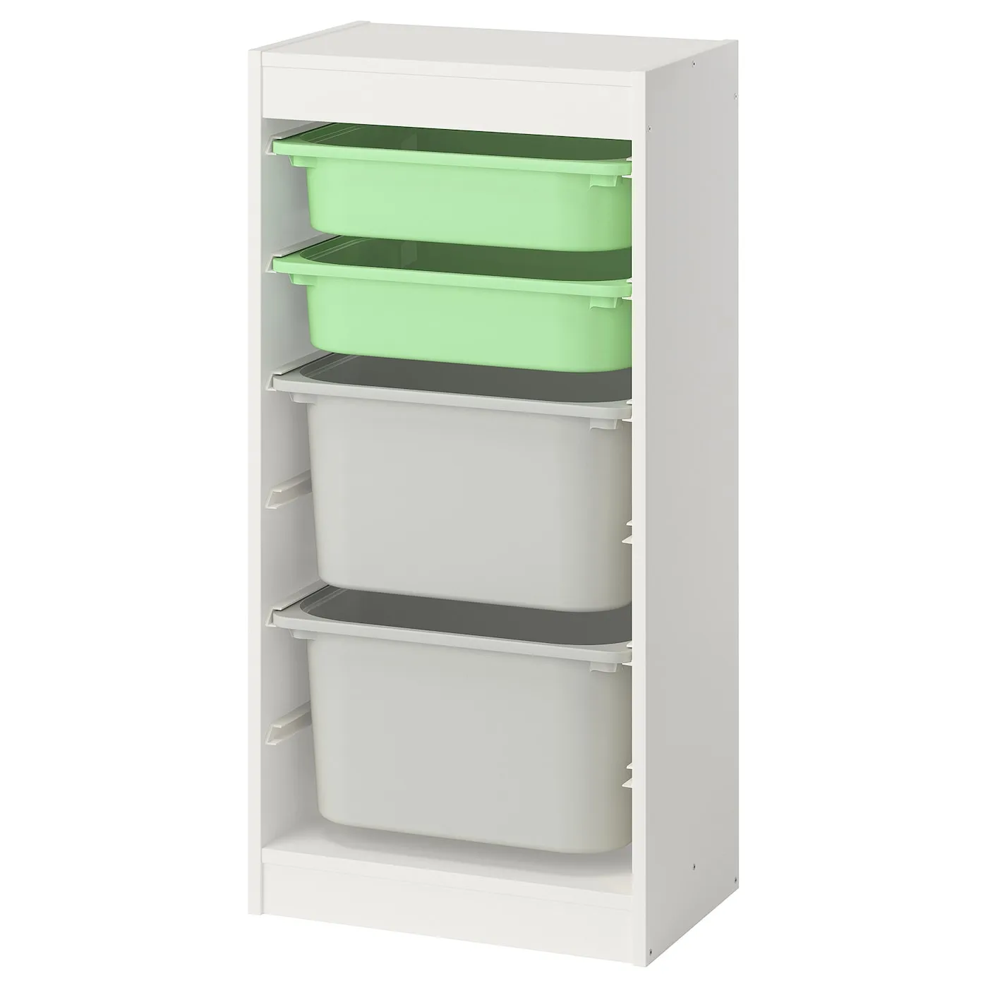 Детям необходима удобная и вместительная система для хранения своих вещей. Серия TROFAST включает в себя деревянные каркасы, сетчатые и пластиковые ящики и лотки (не менее 50% переработанного материала). Их легко выдвигать, переносить и возвращать на место.