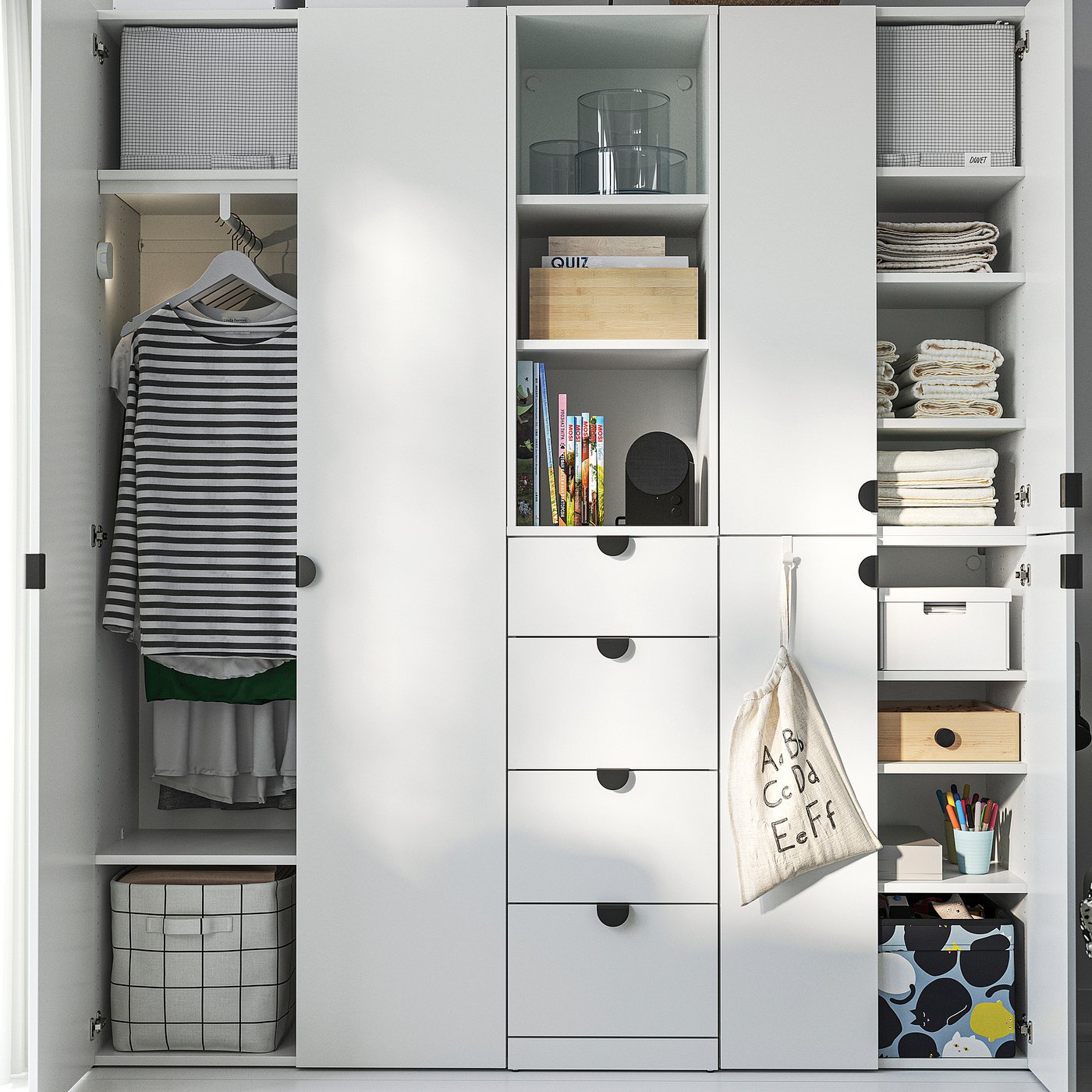 Маленькие пространства, большие нужды – особенно когда вы едите, спите и играете в одной комнате! Решения для хранения LASTARE с органайзерами ALTARLIDEN и аксессуарами, такими как коробки, помогают держать в порядке постельное белье, одежду и игрушки!