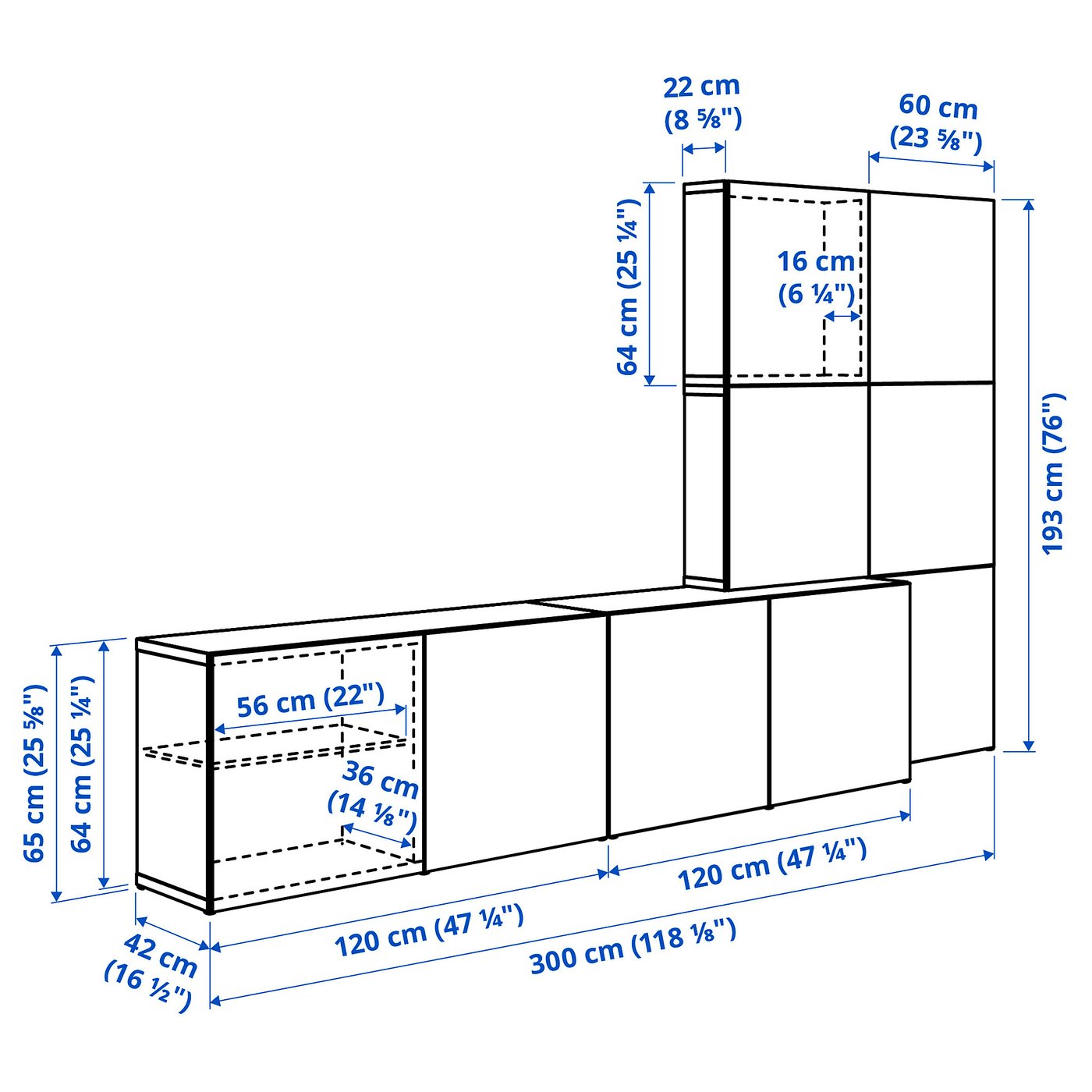Напольный буфет на двух уровнях глубины создает динамичное визуальное впечатление и предлагает много места для хранения. Белые фасады придают светлый, простой и современный вид, который легко сочетать с любой мебелью.