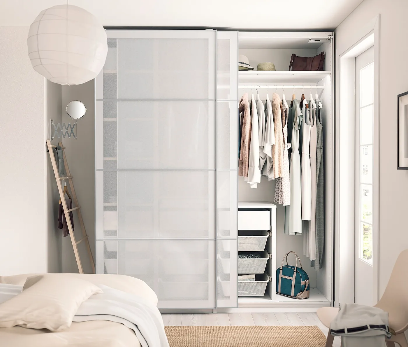 Если вы хотите дополнить ваш каркас PAX раздвижной дверью, минимальная высота потолков должна быть 205 см.