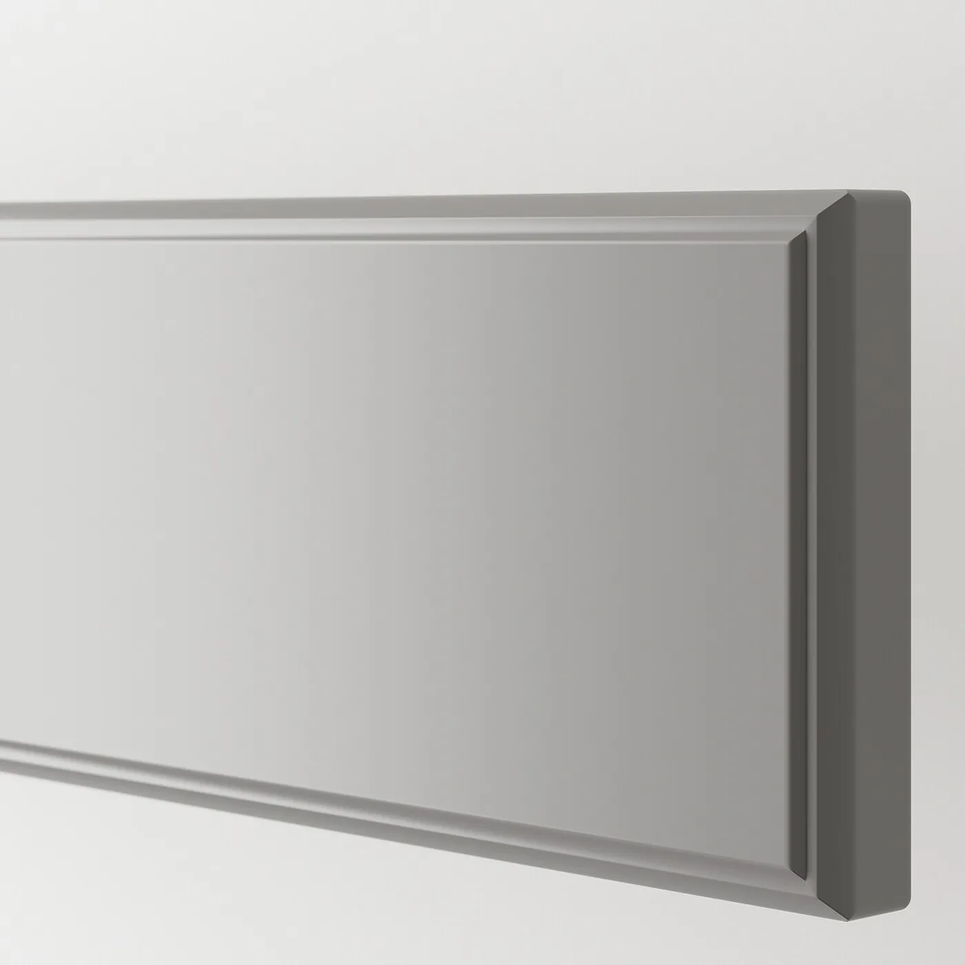 Дверца BODBYN имеет рамку и фаску, придающие ей отчетливый традиционный характер. Мягкий серый добавляет кухни изысканности.
