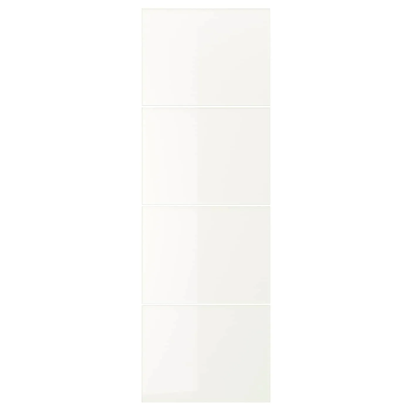 Две комплекта панели создадут полностью белую дверь. Но можете разнообразить её зеркальными или прозрачными стеклянными панелями, либо выбрать другие цвета.