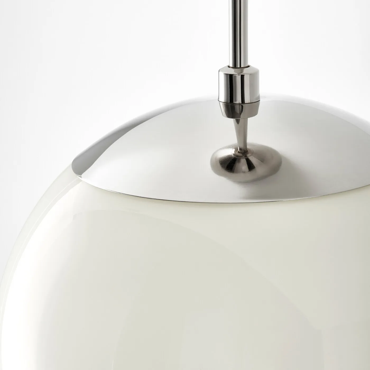 Ищете светильник с чистыми линиями, способный осветить большую площадь? Этот большой плафон, выдутый вручную из белого стекла и снабженный никелированной стальной крепежной деталью, идеально подходит для этой цели.