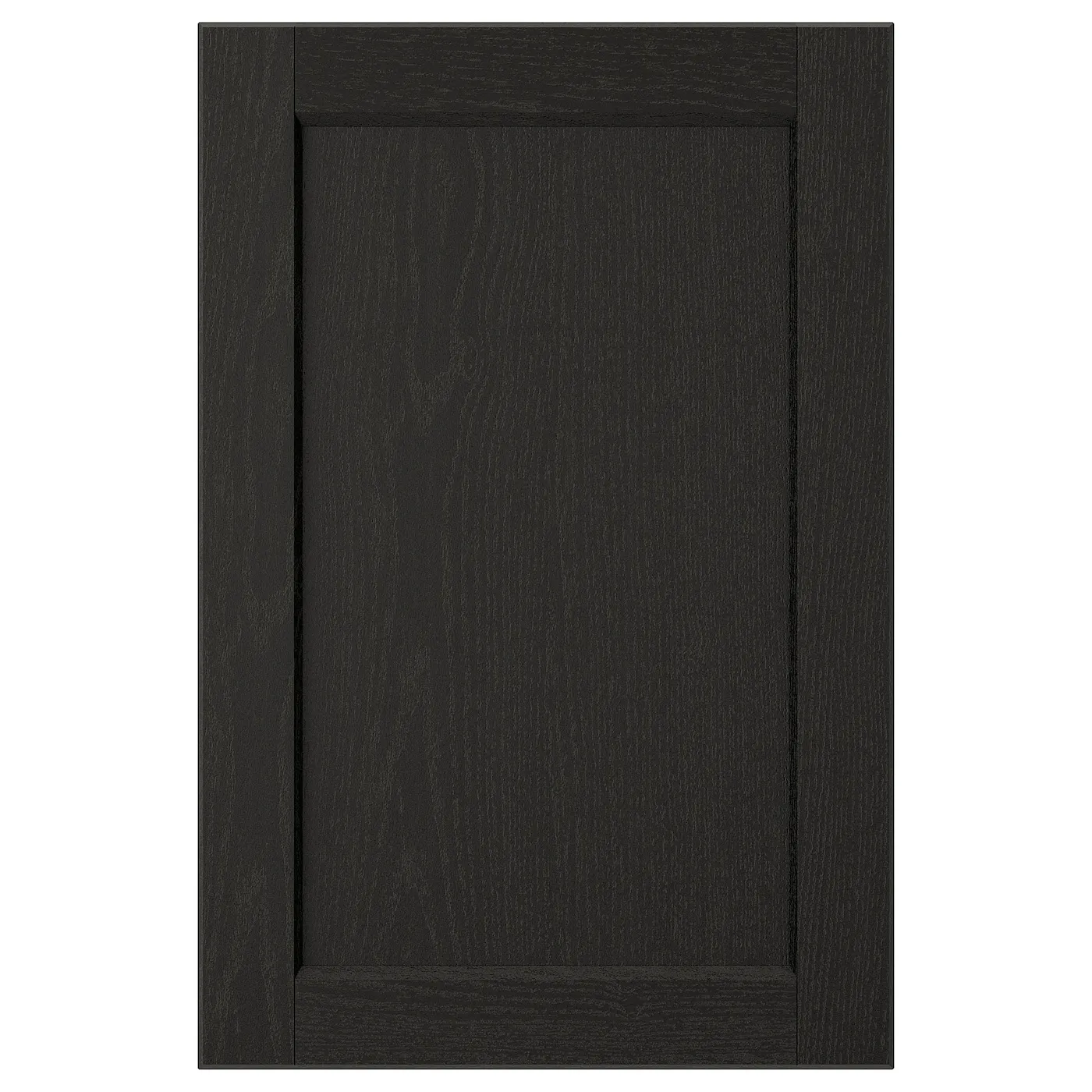Рама из массива древесины с скошенными краями и вставной шпонированной панелью придают фасадам LERHYTTAN классический, традиционный вид. Чёрное покрытие добавляет вашей кухне уют и солидность.