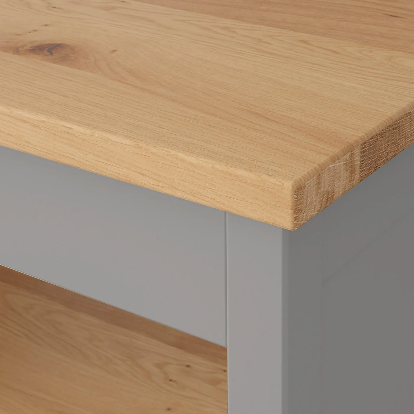 Эффективно размещаемый кухонный остров с достаточным пространством для микроволновой печи и других вещей, чтобы максимально использовать место. Задняя часть приспособлена для кабеля, а крепкий выдвижной ящик легко открывается и закрывается.
