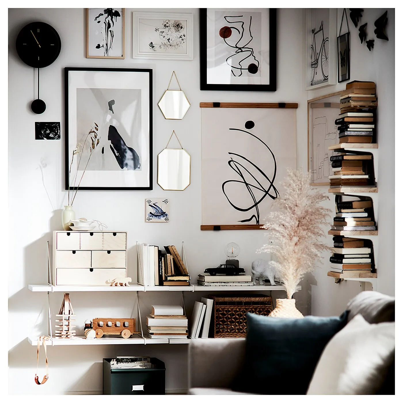 Украсьте интерьер любимыми изображениями! Прикрепите держатель VISBÄCK к верхней и нижней части постера — или только к верхней, чтобы использовать разные мотивы. Легко крепится к стене с помощью одного винта.