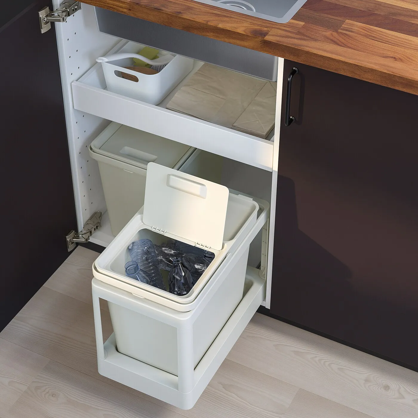 Выдвижная рама обеспечивает быстрый доступ и хороший обзор сортировки мусора, а также удерживает контейнер в стабильном положении. Вытяните, чтобы сортировать, и уберите обратно, когда закончите.