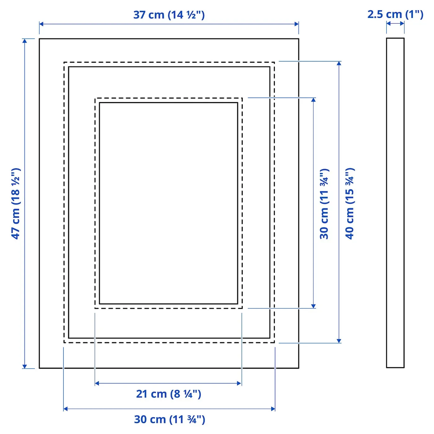 Эта рама подходит под фотографию размером 21x30 см, если использовать паспарту, и 30x40 см, если без него.