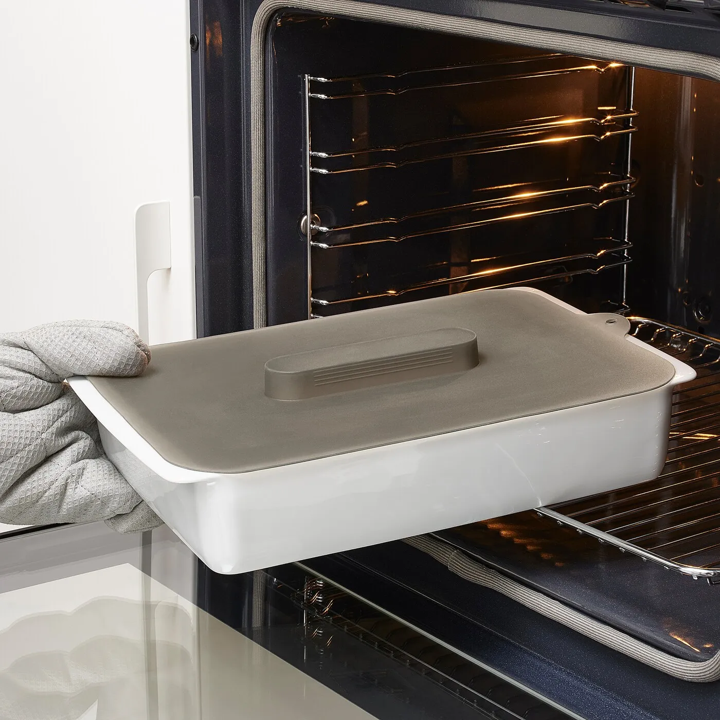 Подходит ко всей посуде для духовки от IKEA, кроме самой большой в серии KONCIS (40 x 32 см).