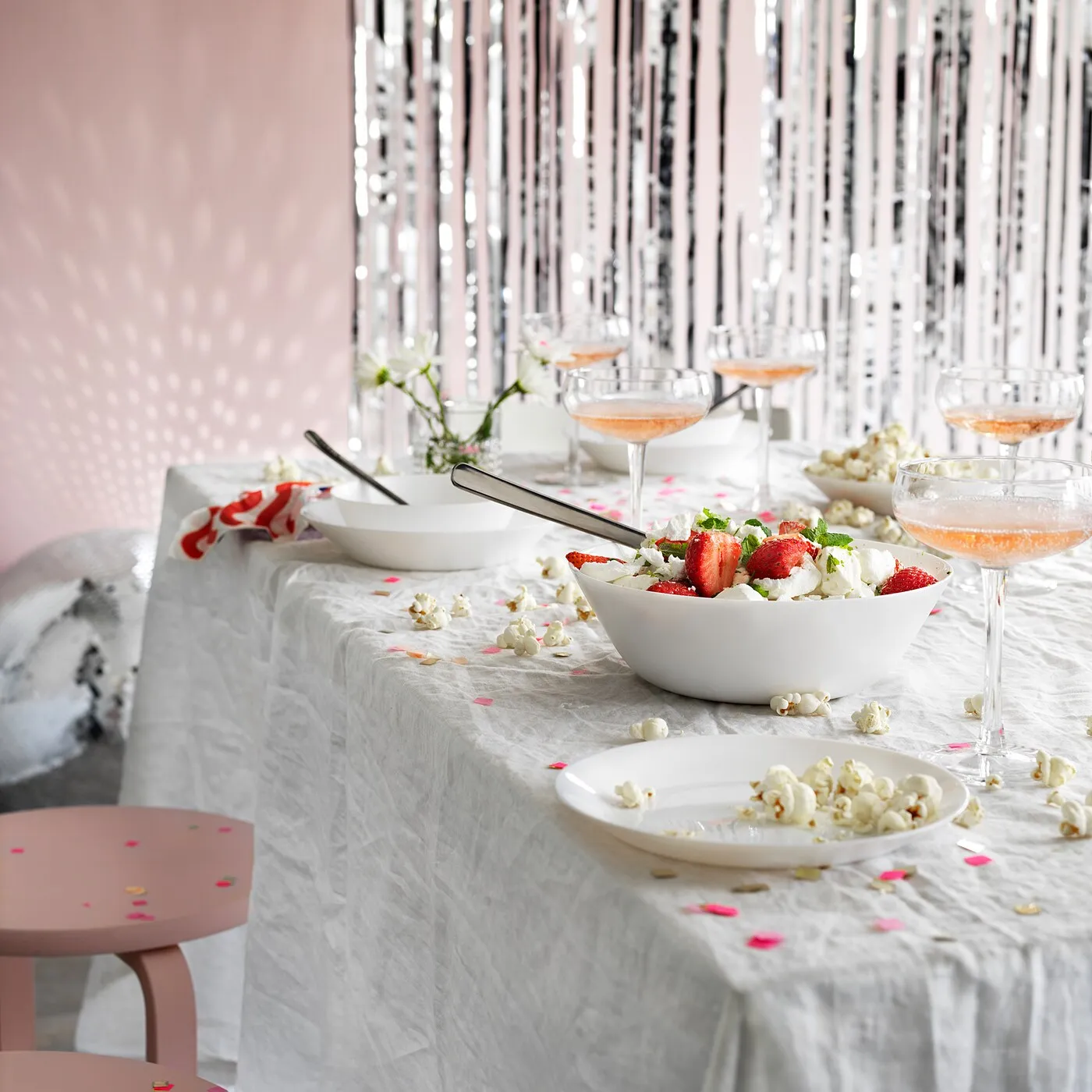 Эта посуда выглядит и ощущается как фарфор, но изготовлена из закаленного стекла. Это позволяет нам снизить цену, и вы получаете элегантный и блестящий продукт — по доступной стоимости.