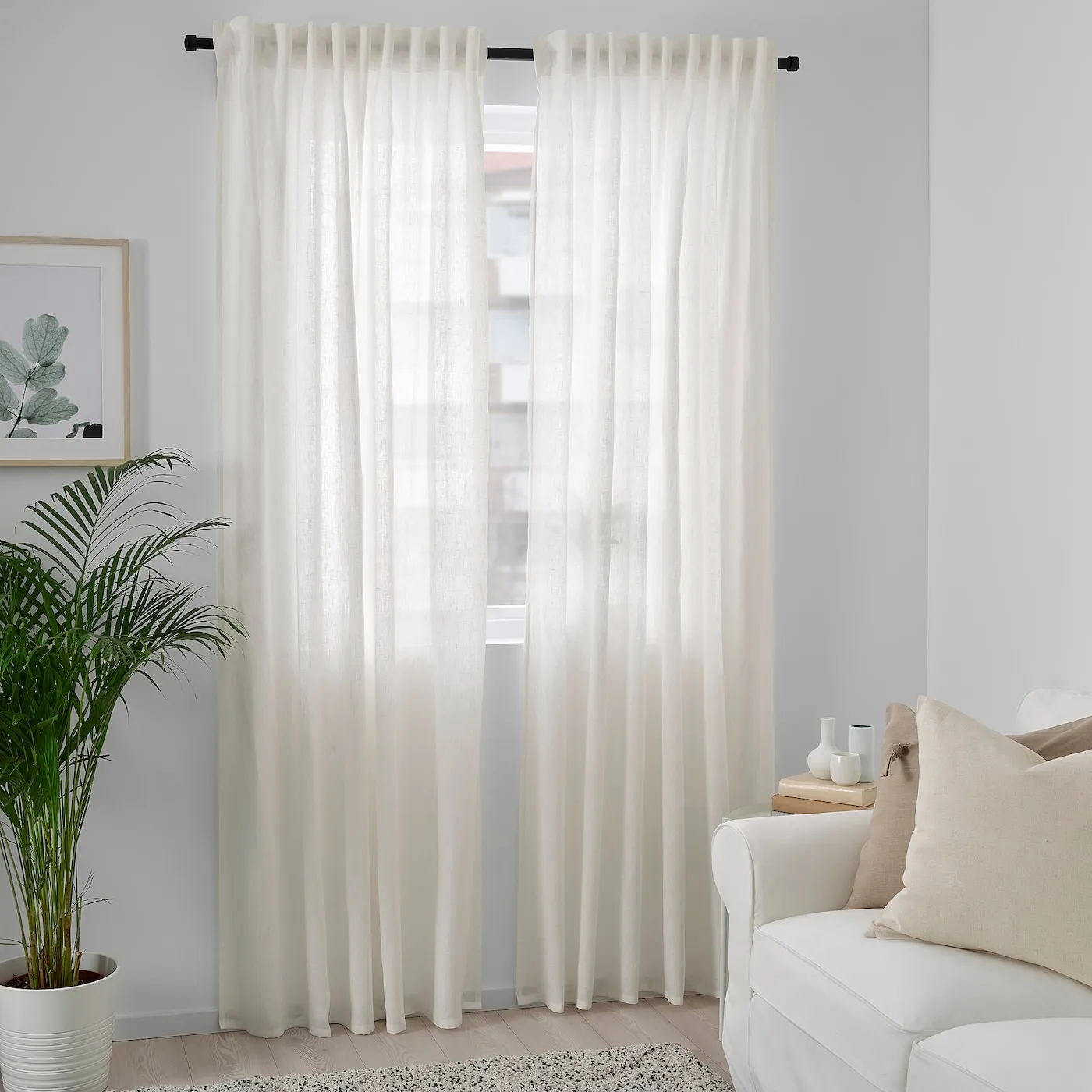 Эти классические белые шторы из натурального жатого льна обеспечивают приватность и создают в комнате уютную атмосферу. Ткань подходит для любого времени года, плавно ниспадает, пропускает свет и воздух.