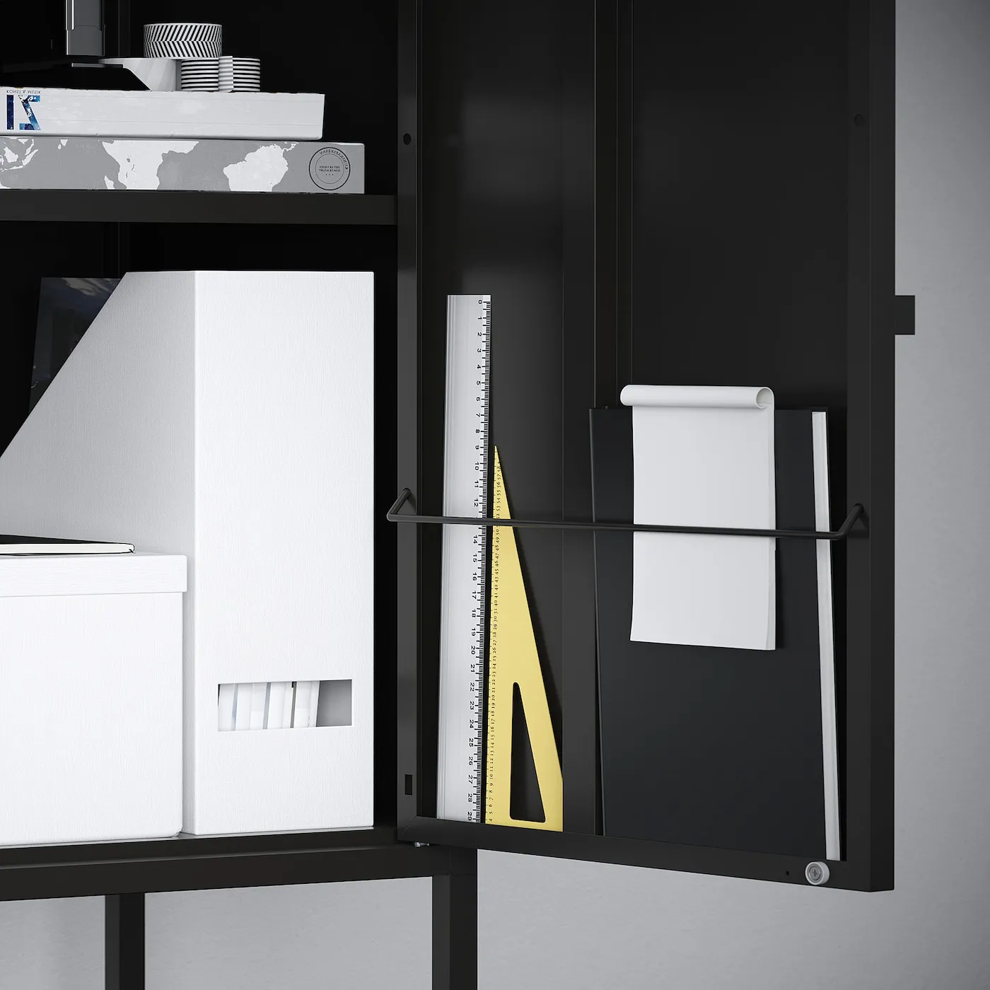 Упорядочьте важные документы, письма и газеты, сортируя их на внутренней стороне дверцы шкафа.