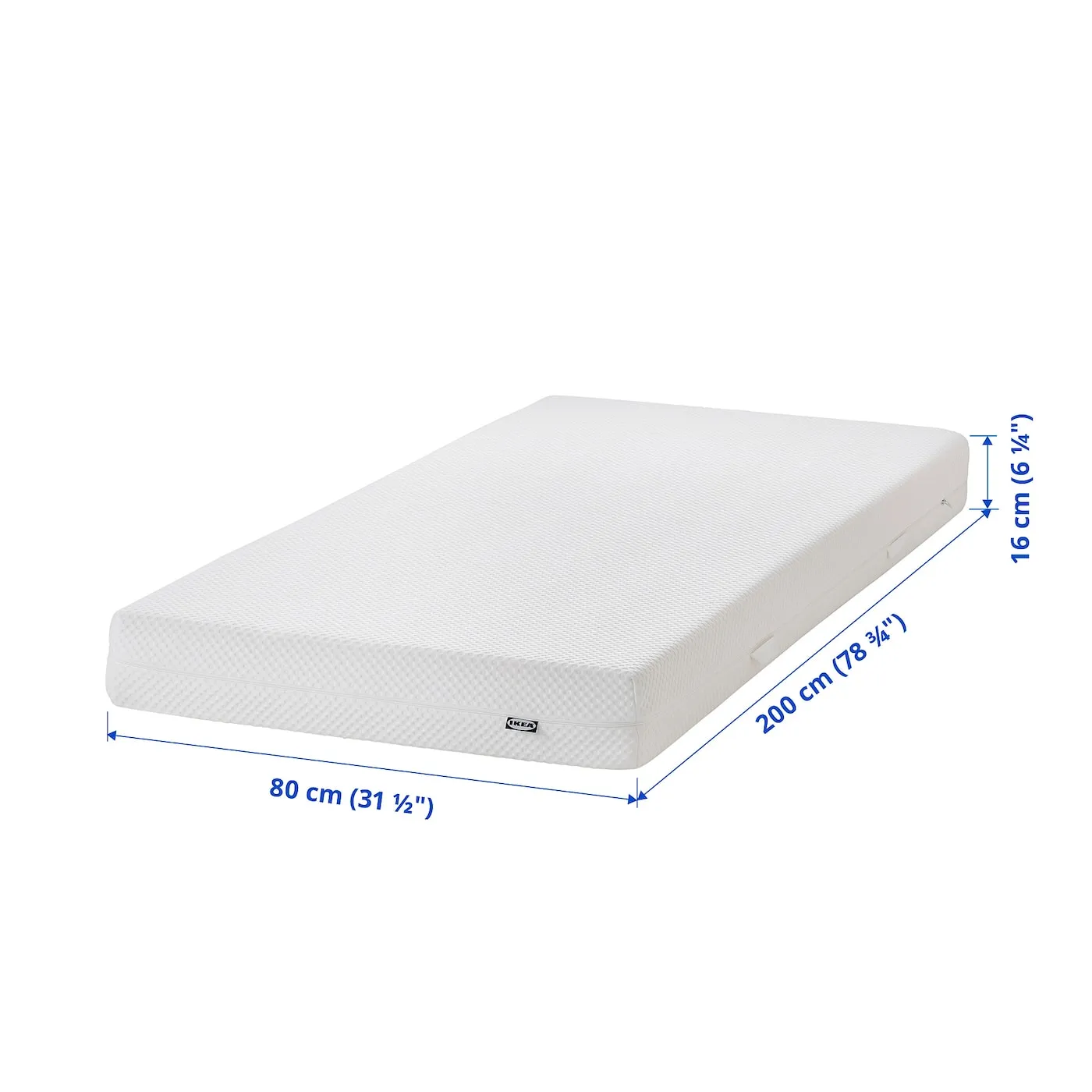 Жесткий матрас из пеноматериала высотой 16 см с двухслойной конструкцией. Верхний слой из пены с эффектом памяти снимает давление, обеспечивая поддержку тела за счет зон комфорта. А мягкий чехол можно стирать.