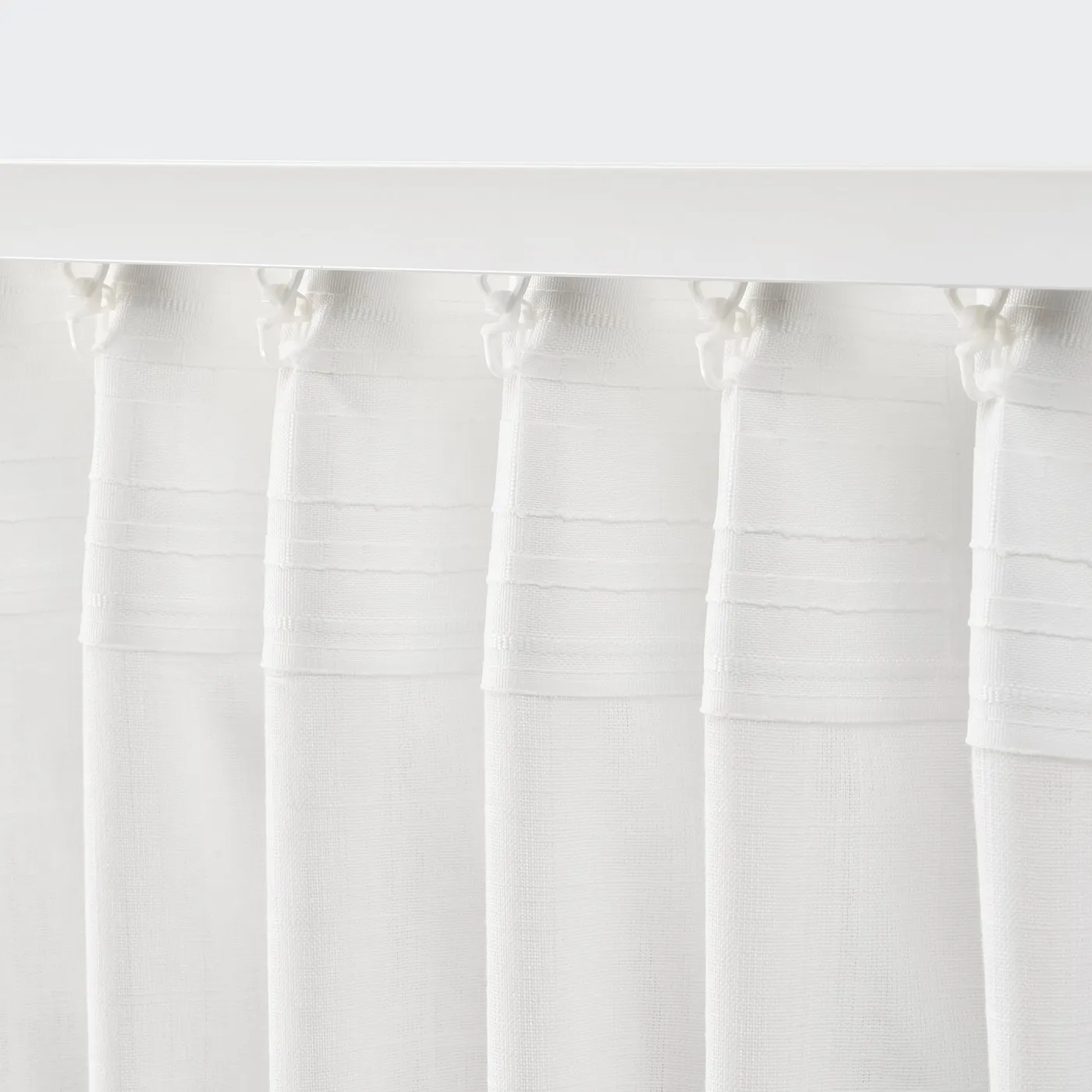 Белые шторы SILVERLÖNN позволяют солнечному свету проникать в комнату, одновременно смягчая его яркие лучи и устраняя блики. Прекрасная текстура, напоминающая лен, из 100% хлопка. Легко сочетаются и отлично подходят для многослойных решений.