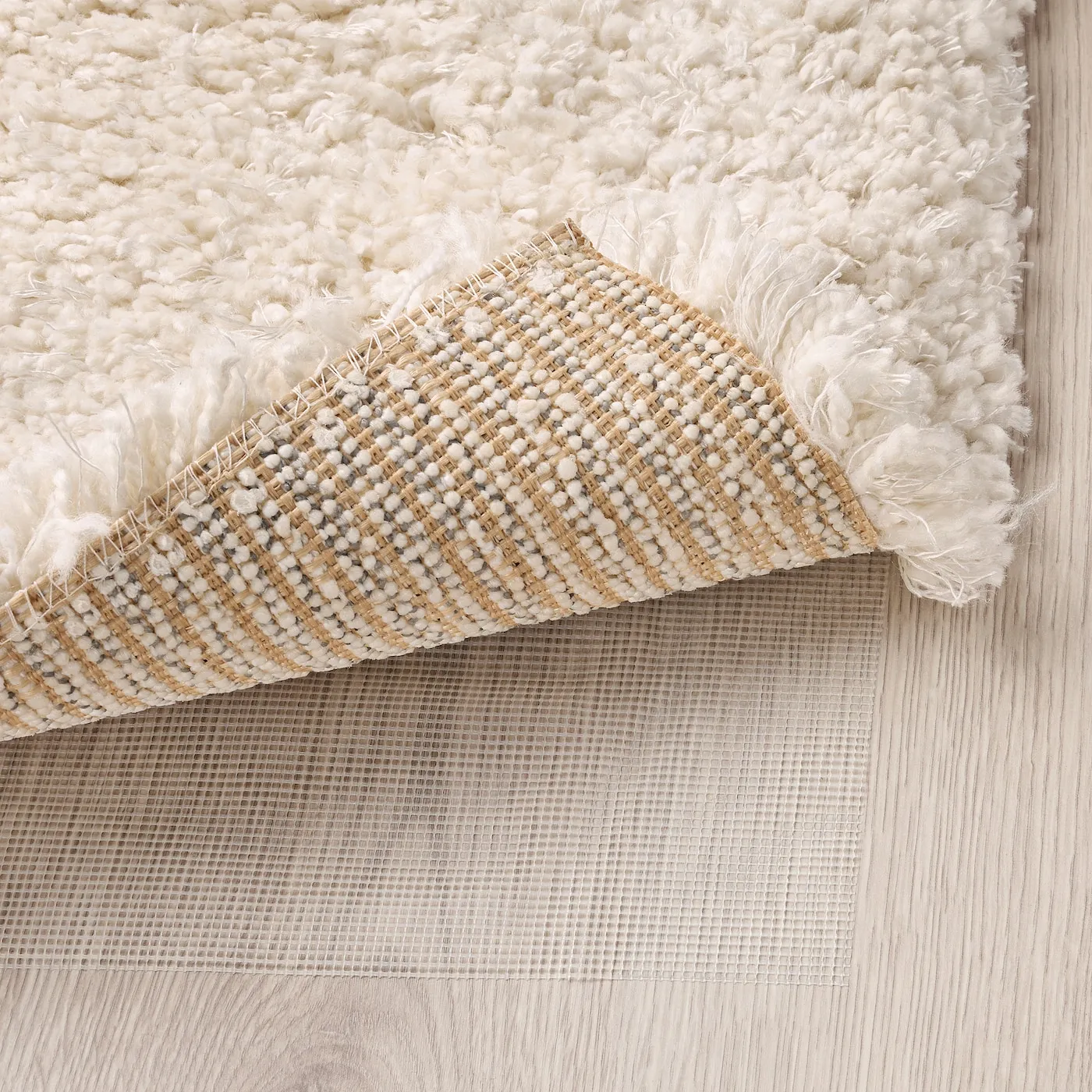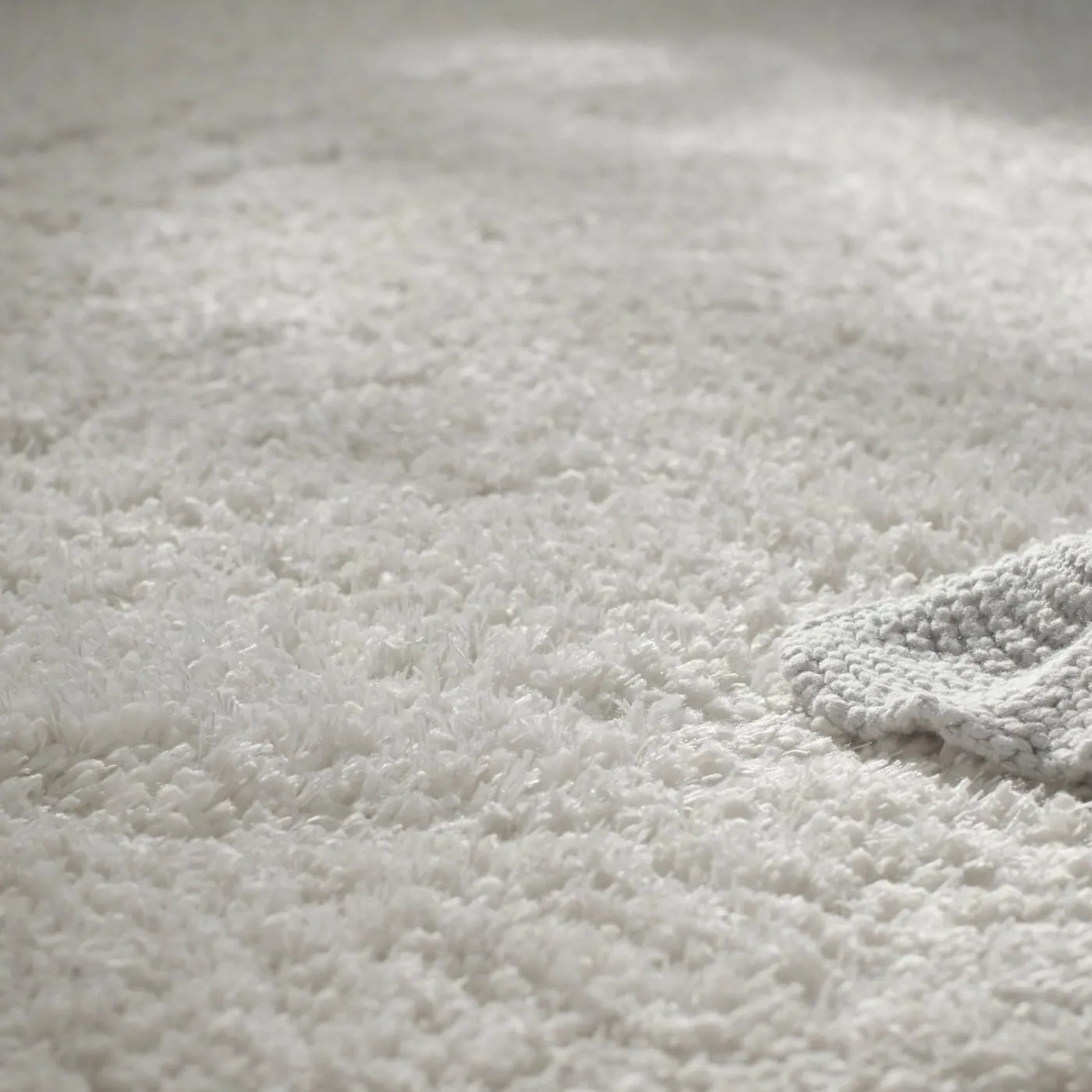 Новый взгляд на классический пушистый ковёр! Длинный белый ворс сплетён из пряжи разной толщины, создавая мягкую и уютную текстуру, на которую приятно садиться, ходить, играть или даже просто лежать.