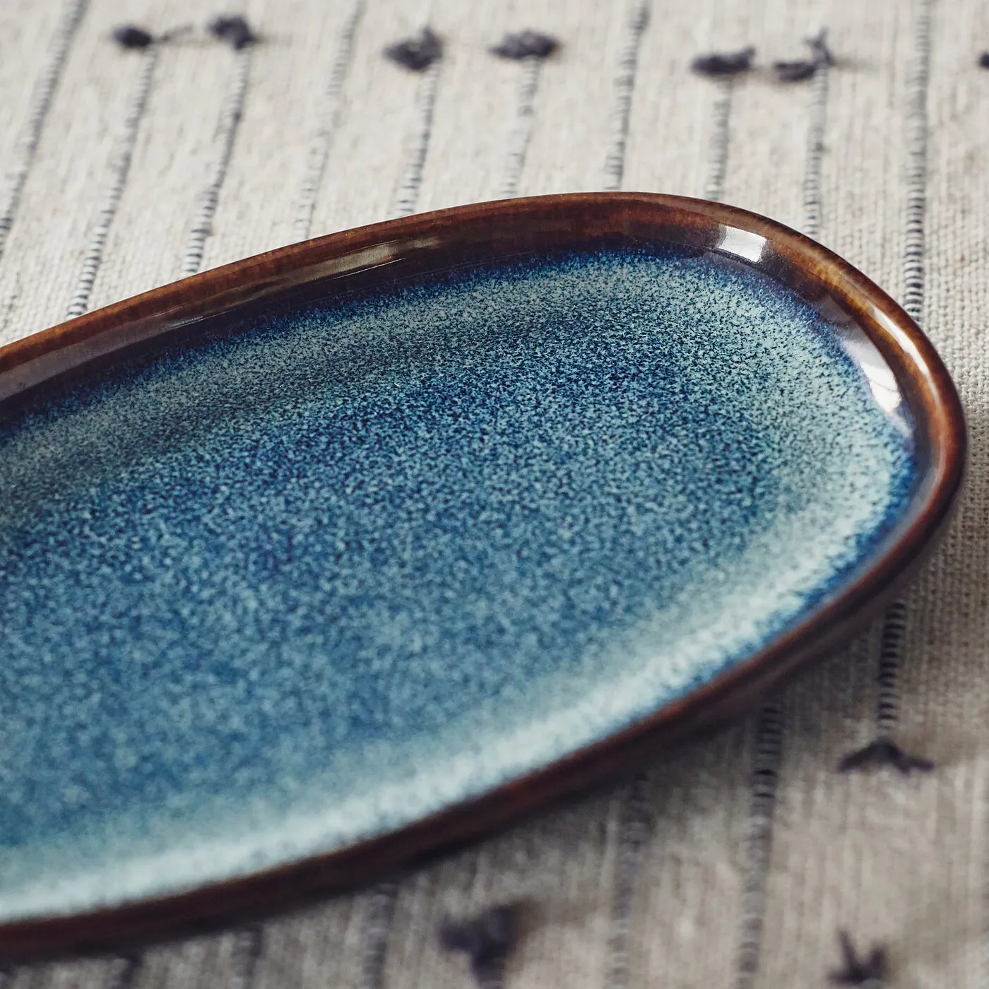 Эта тарелка океанического синего цвета с золотисто-коричневыми деталями делает каждый прием пищи настоящим удовольствием. Украсьте свой стол классическими формами и ярким акцентом ручной работы. Вечное очарование в уникальном дизайне.
