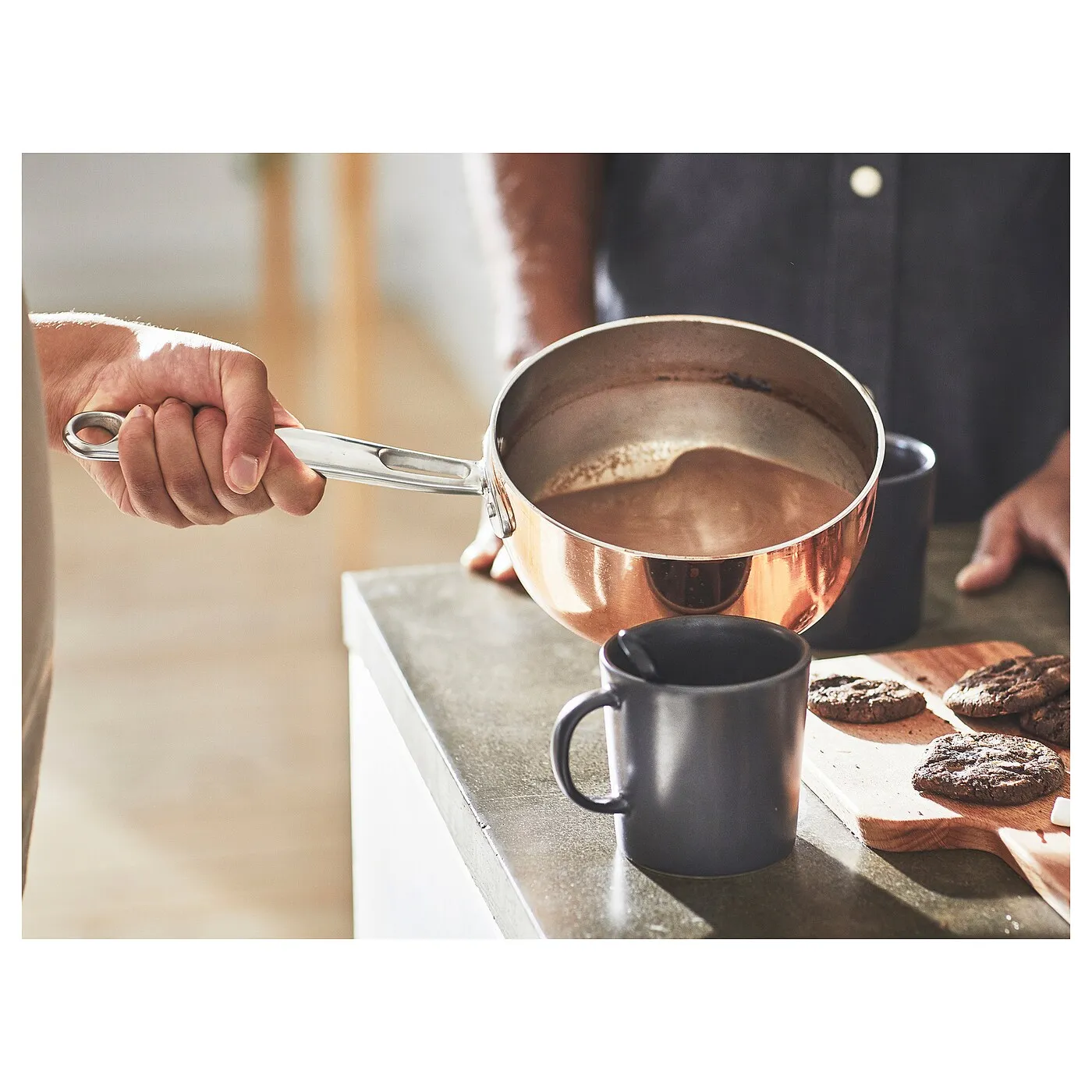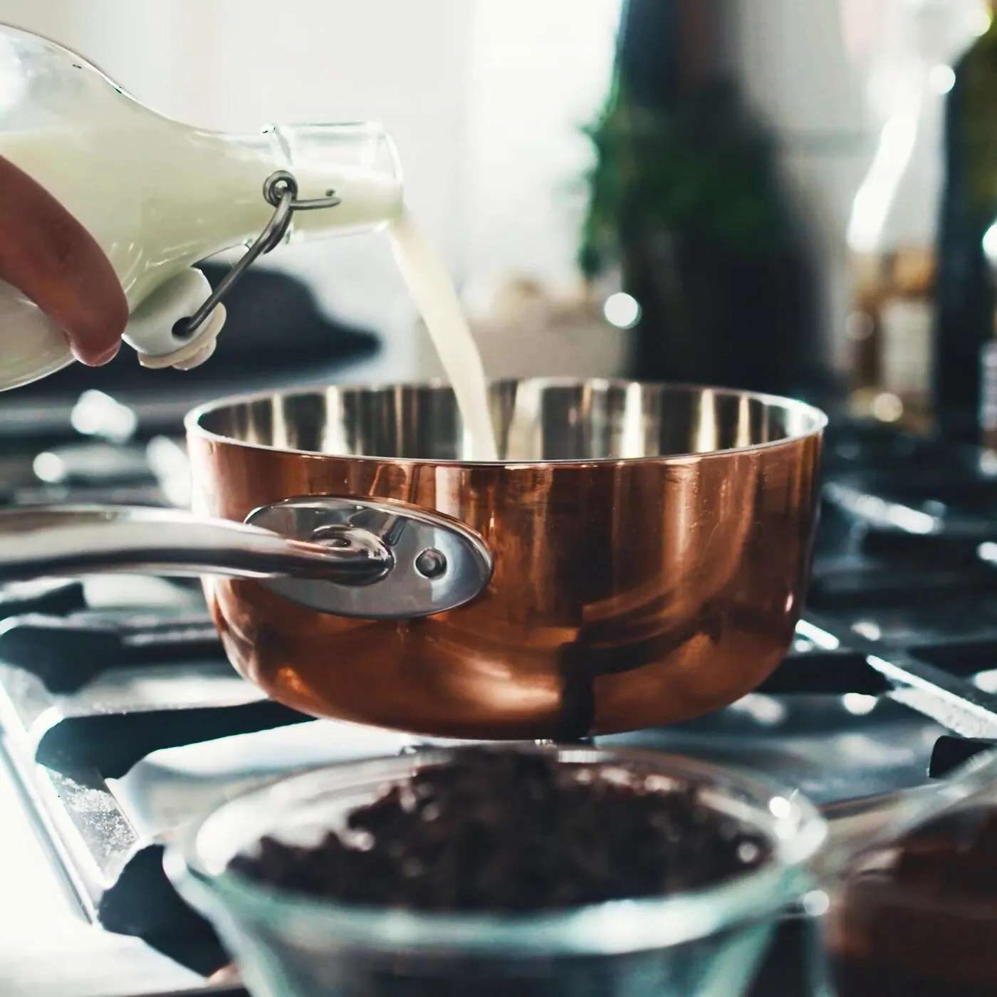 Медь отличается прочным и тактильным видом, добавляя изящество кухне, и обеспечивает равномерное распределение тепла.