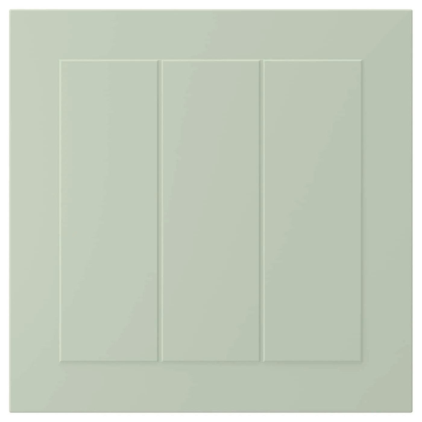Фасады STENSUND зелёного цвета с рельефными панелями придают интерьеру деревенскую атмосферу и выглядят стильно. Лакированная поверхность защищает от пятен и влаги, легко очищается.