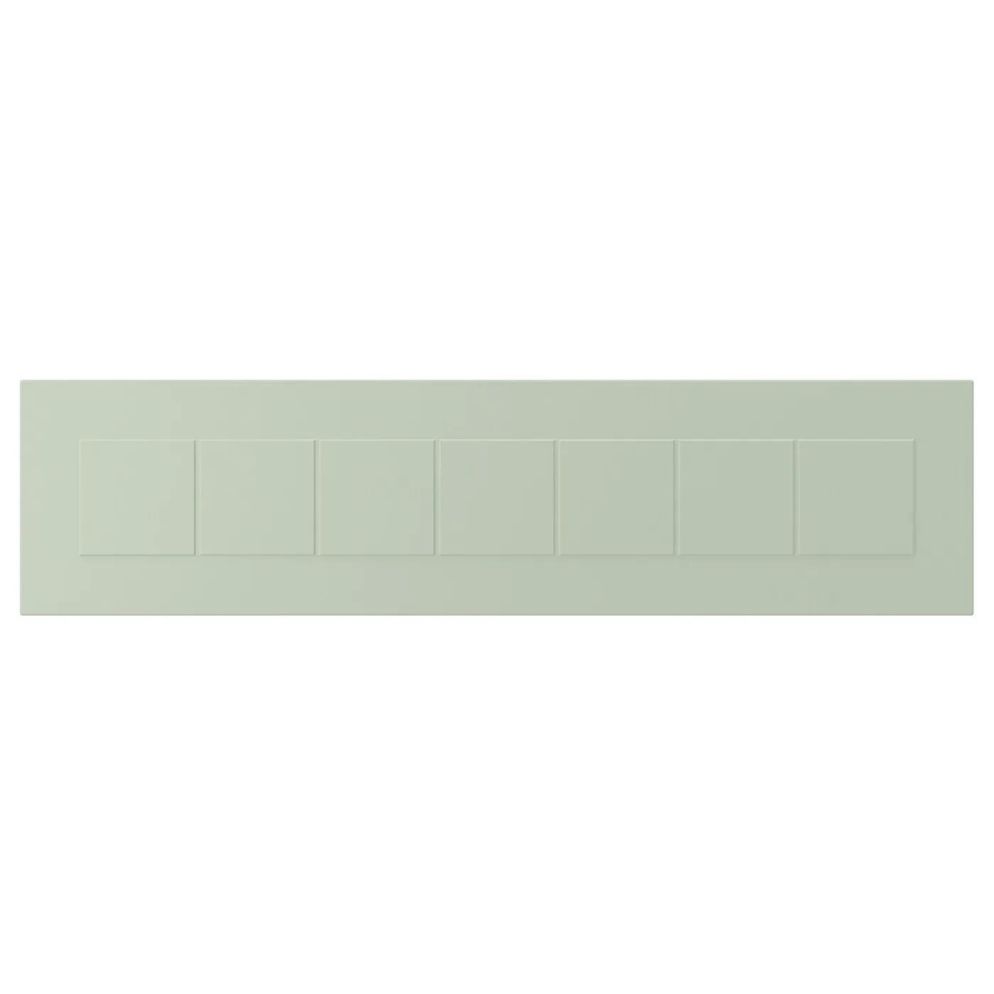 Фронты STENSUND в зеленом цвете с рельефными панелями придают интерьеру нотку деревенской жизни с гармоничным и мастерски выполненным видом. Лаковая поверхность устойчива к пятнам и влаге и легко очищается.
